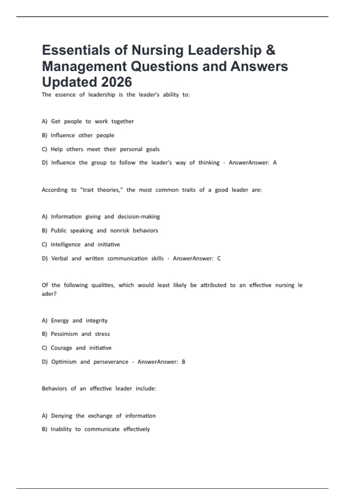 AccordingCtoC"traitCtheories,"CtheCmostCcommonCtraitsCofCaCgoodCleaderCare: