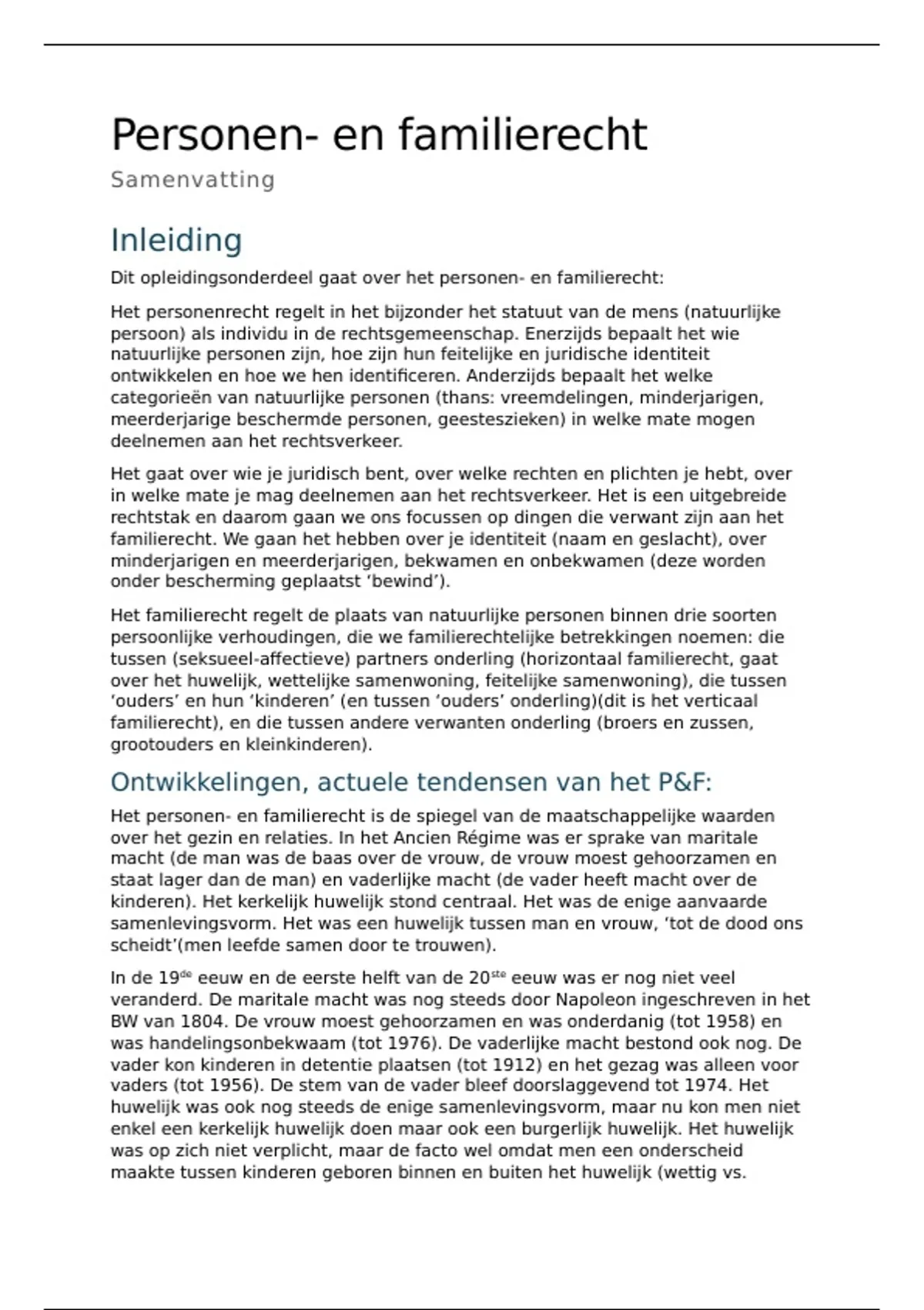 PERSONEN- EN FAMILIERECHT SAMENVATTING 18/20