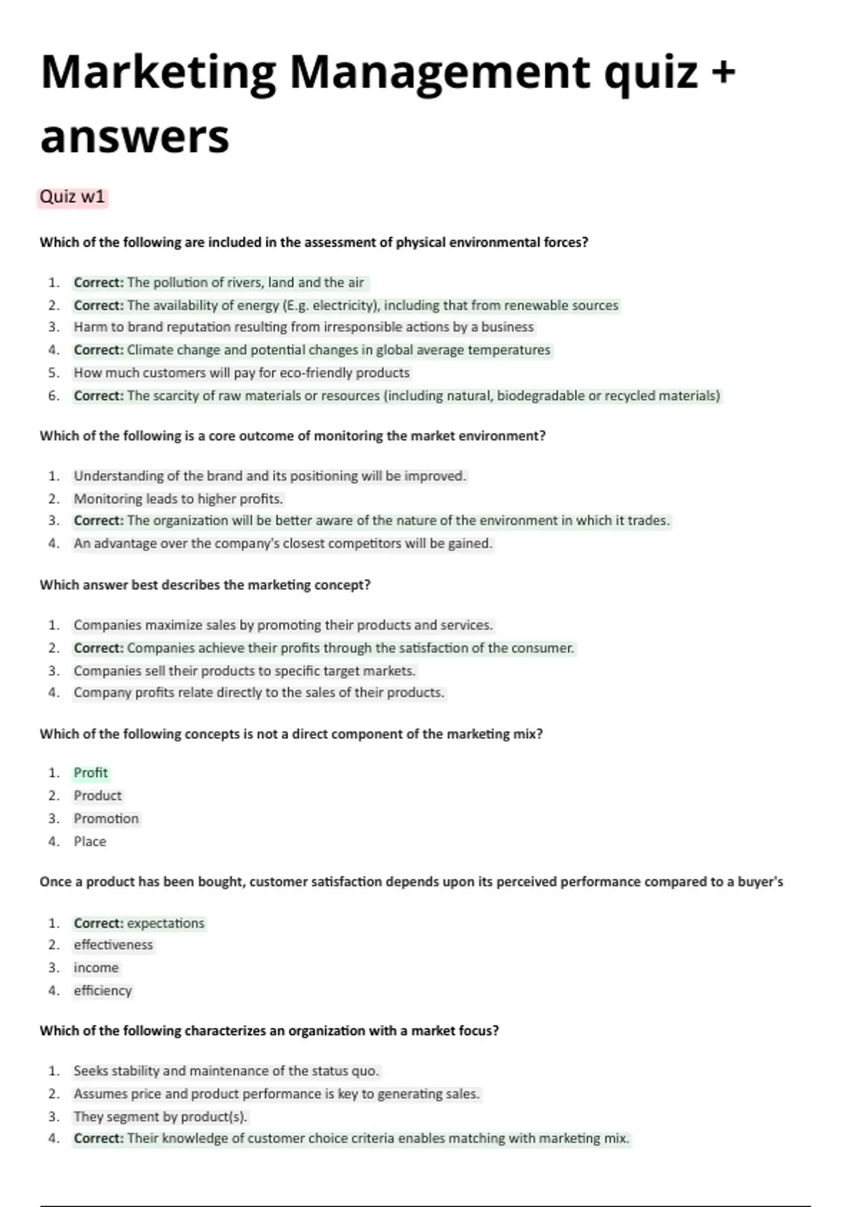 Marketing Management quiz +