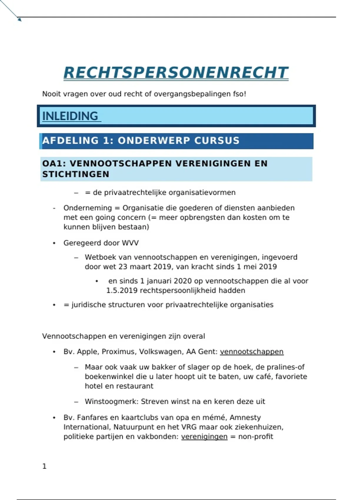 OA1: VENNOOTSCHAPPEN VERENIGINGEN EN