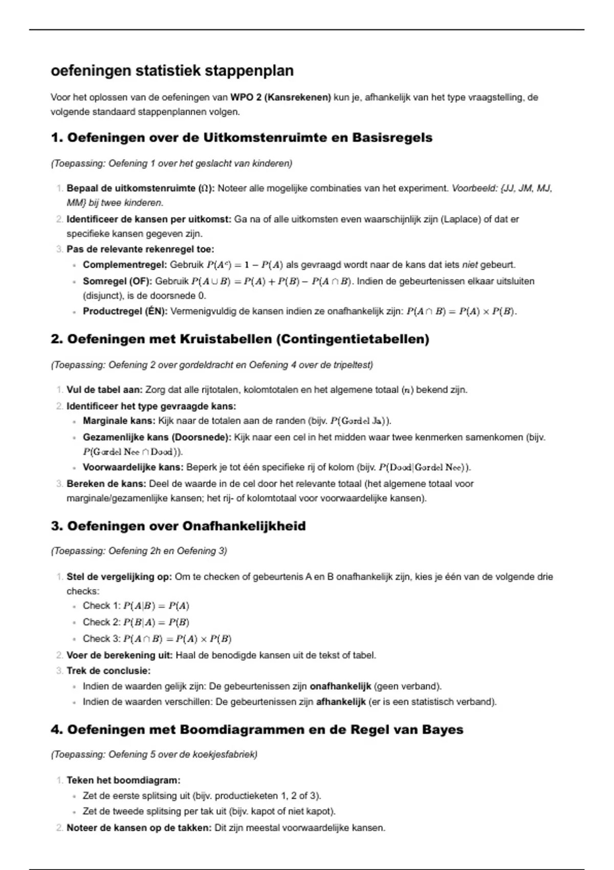 Voor het oplossen van de oefeningen van WPO 2 (Kansrekenen) kun je, afhankelijk van het type vraagstelling, de