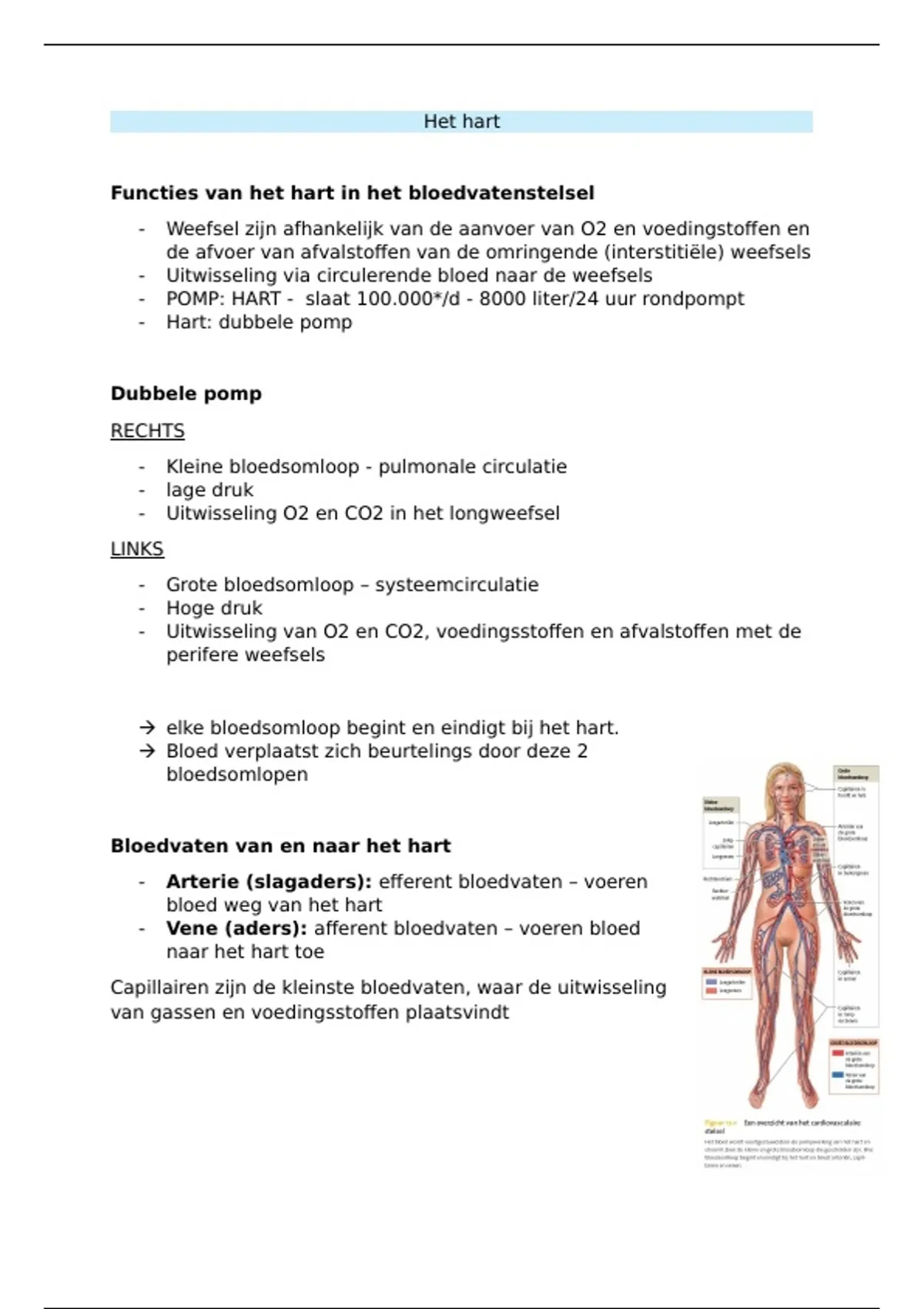  elke bloedsomloop begint en eindigt bij het hart.