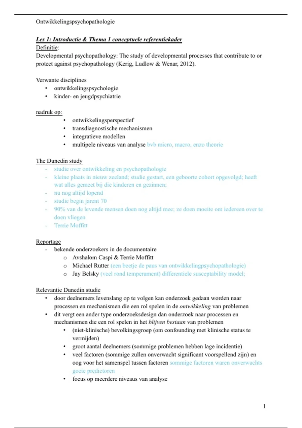 Samenvatting Ontwikkelingspsychopathologie (P0V86a)