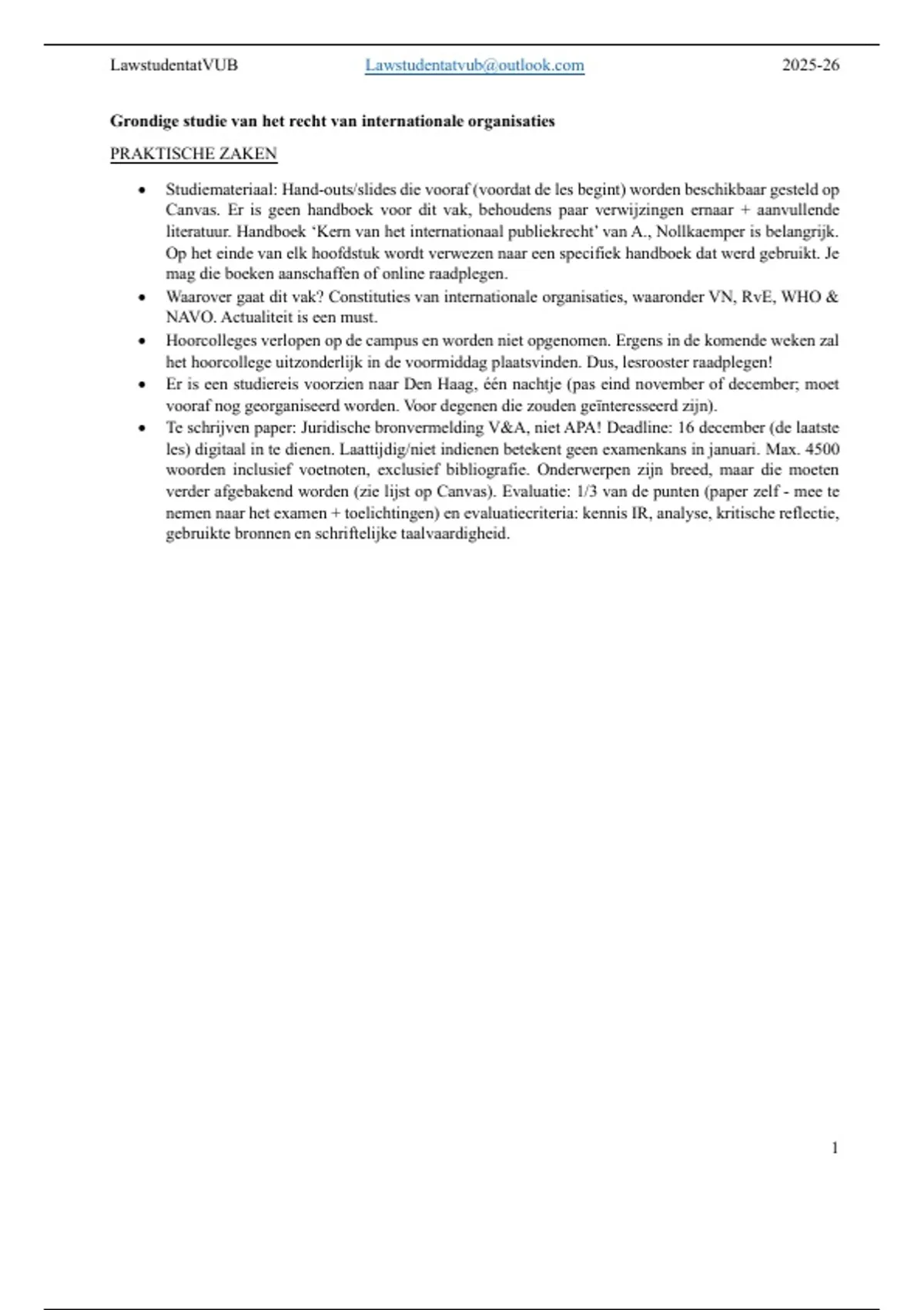 • Te schrijven paper: Juridische bronvermelding V&A, niet APA! Deadline: 16 december (de laatste