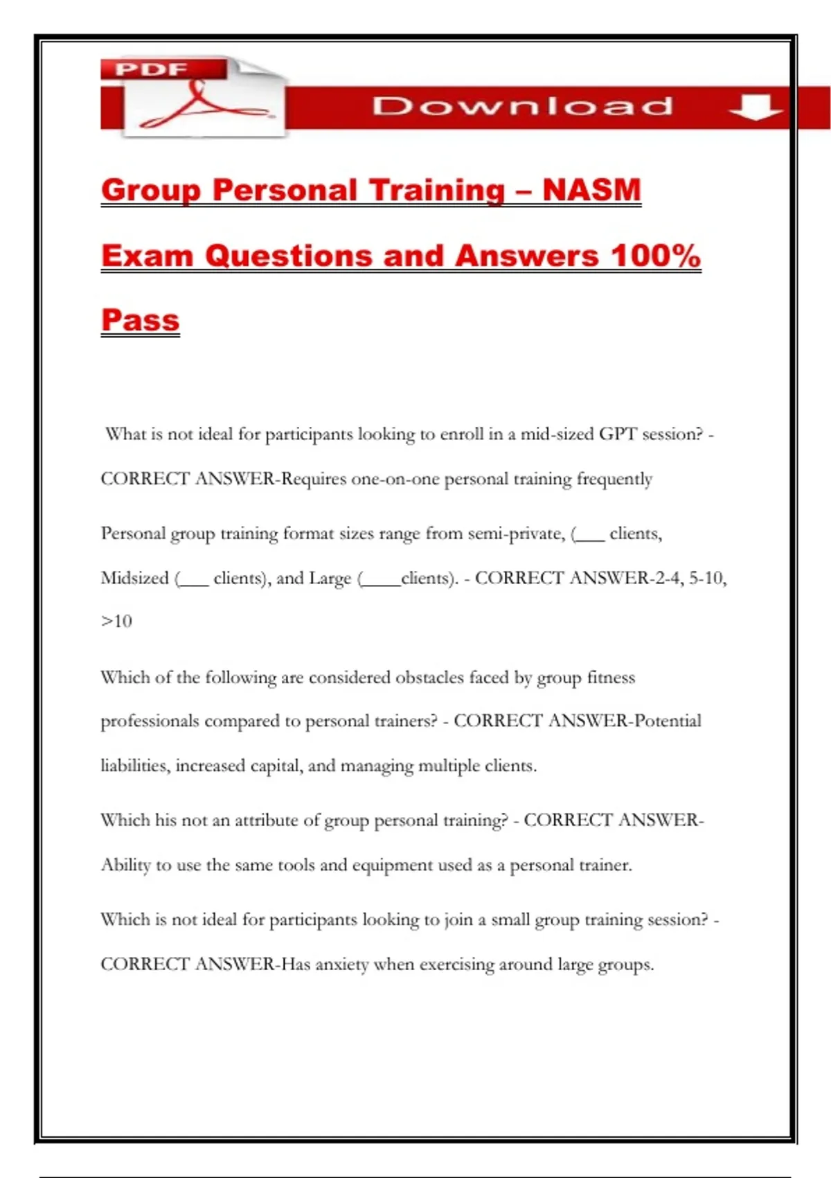 Group Personal Training – NASM Exam Questions and Answers 100% Pass