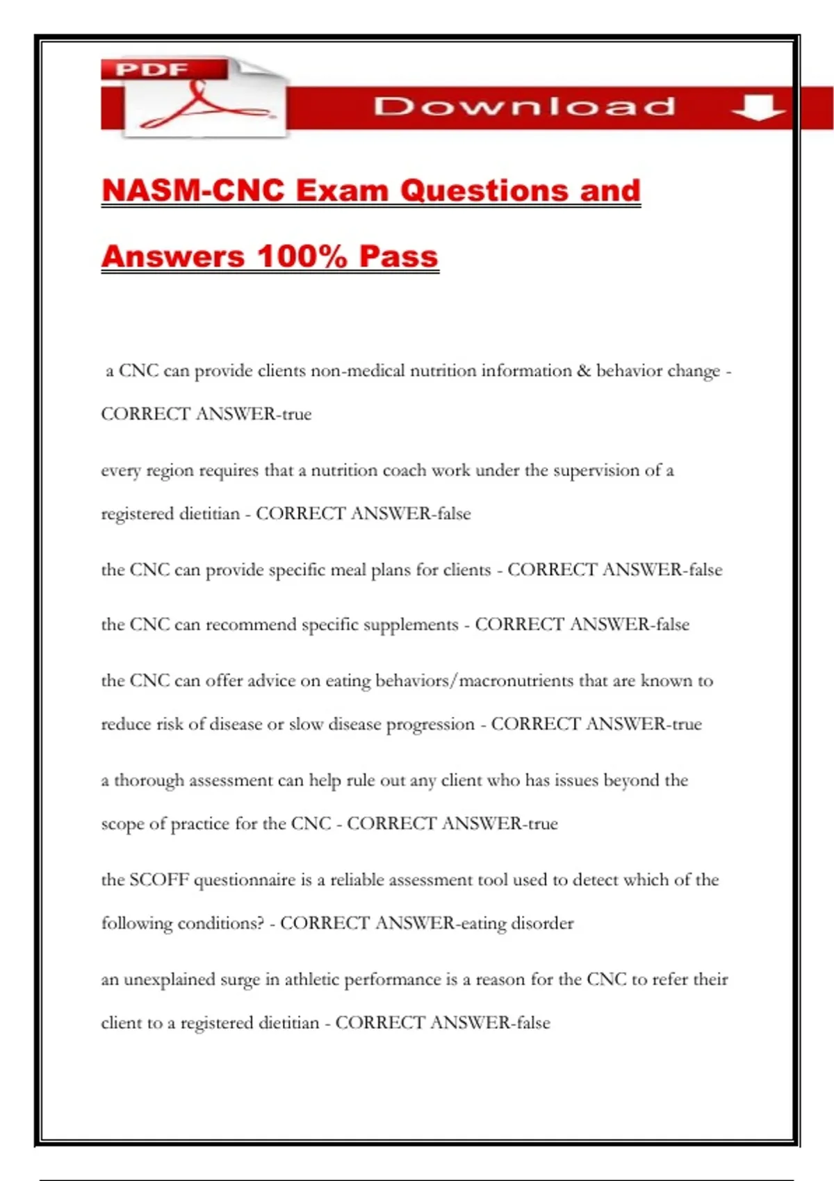 NASM-CNC Exam Questions and Answers 100% Pass
