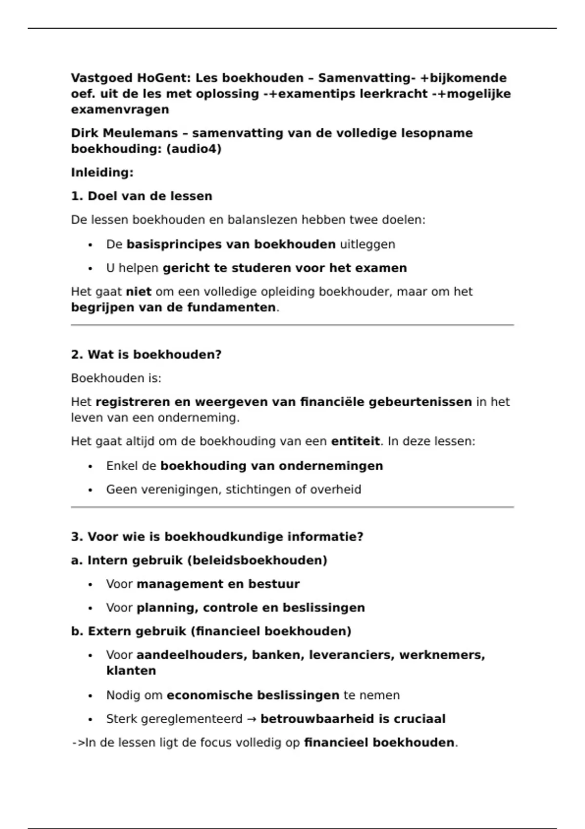Vastgoed HoGent: Les boekhouden – Samenvatting- +bijkomende