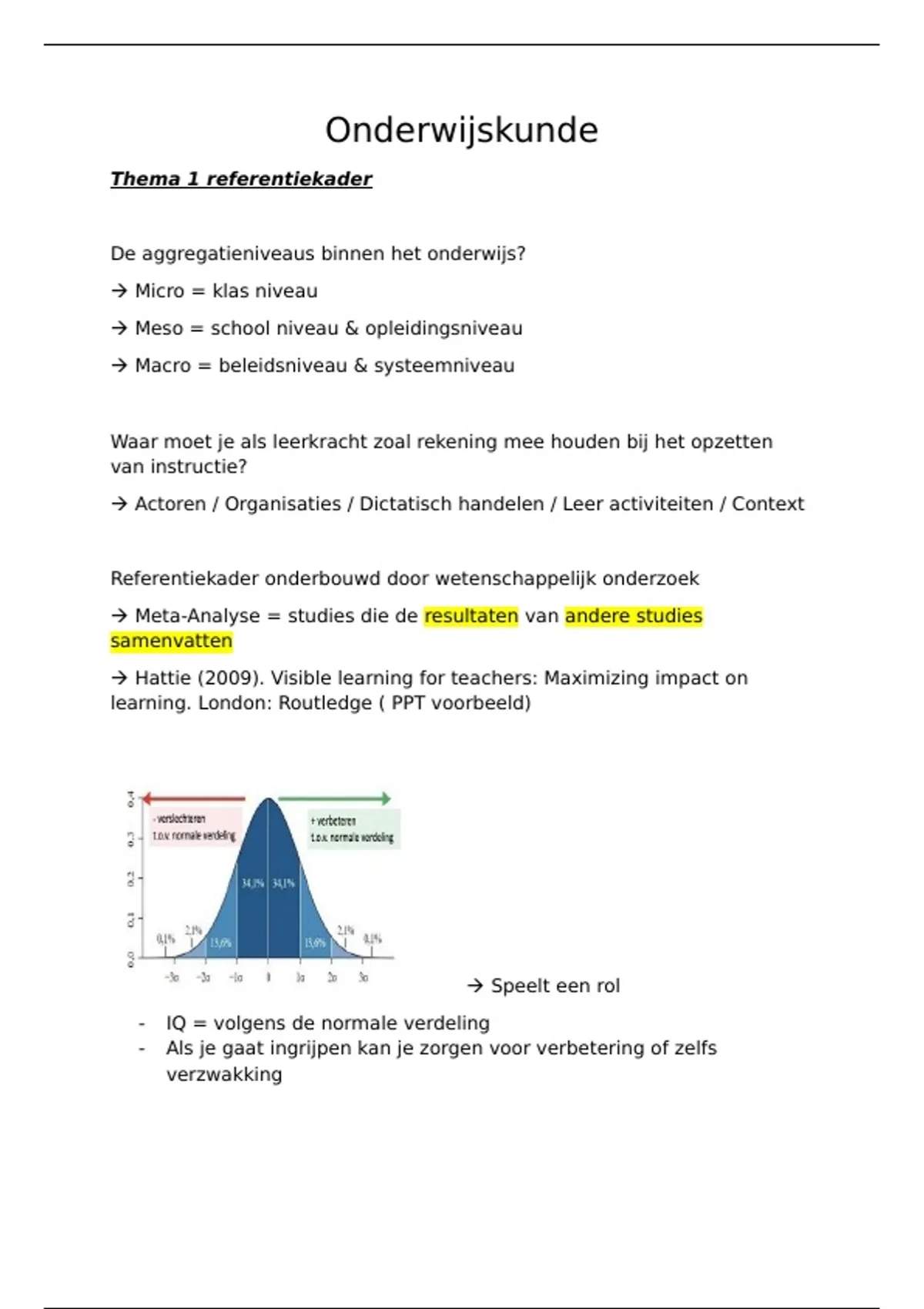 Zelf geschreven voorbereiding van het vak Onderwijskunde, waarvan er gebruik werd gemaakt van : het handboek (1&2), de ppt slides , de notities. De titels staan grondig bij elk blad bijgeschreven zodat alles makkelijker terug te vinden is.