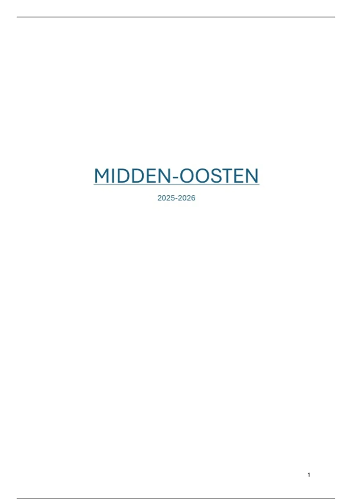 Dit is een samenvatting van het vak Midden-Oosten gegeven door Brigitte Herremans. Het is een verzameling van alle info uit de lessen/ slides en de info gehaald uit de verplichte artikels. Uitgelegd per te kennen onderwerp met ook de gastlessen in verwerkt.