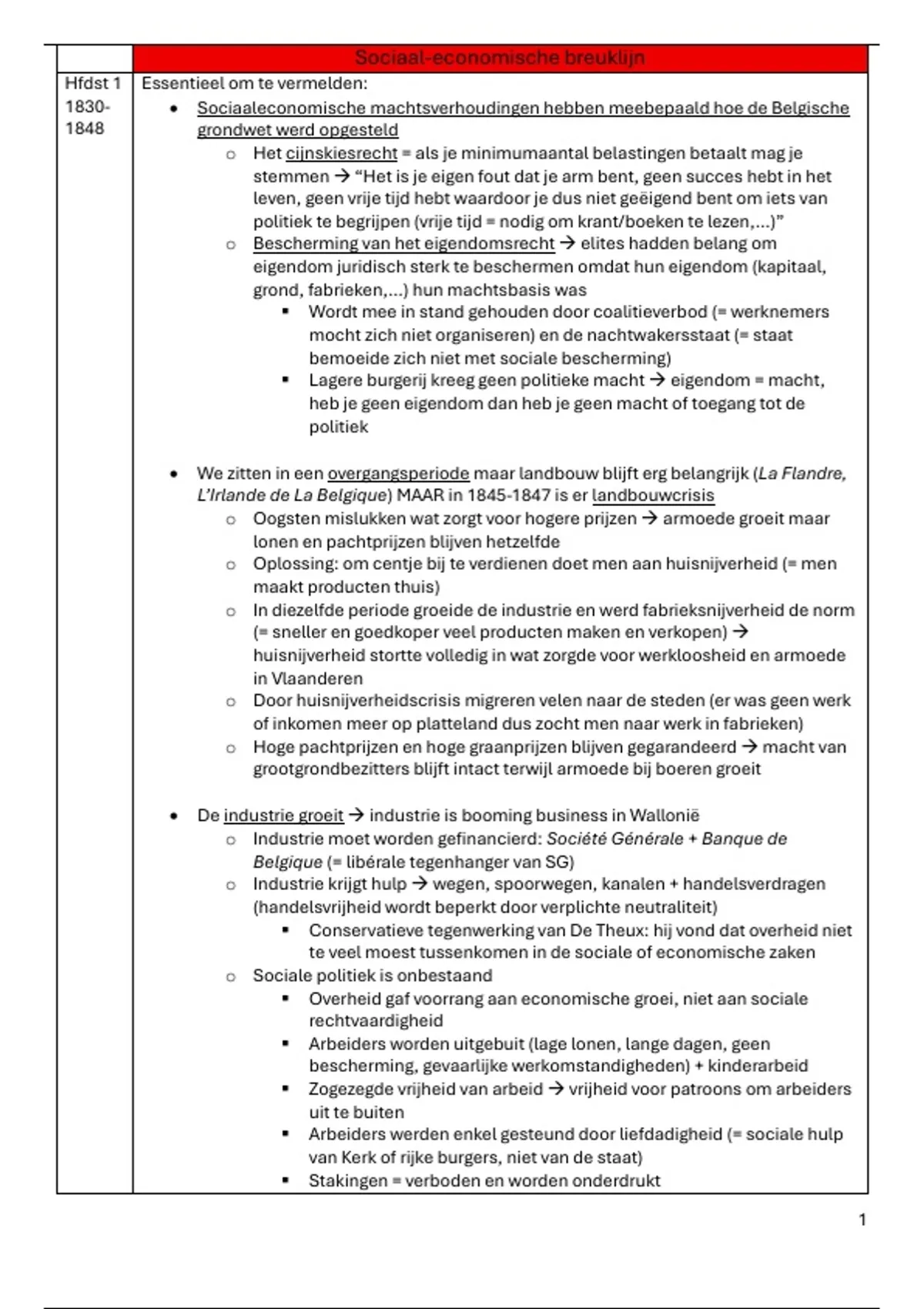 1830- • Sociaaleconomische machtsverhoudingen hebben meebepaald hoe de Belgische