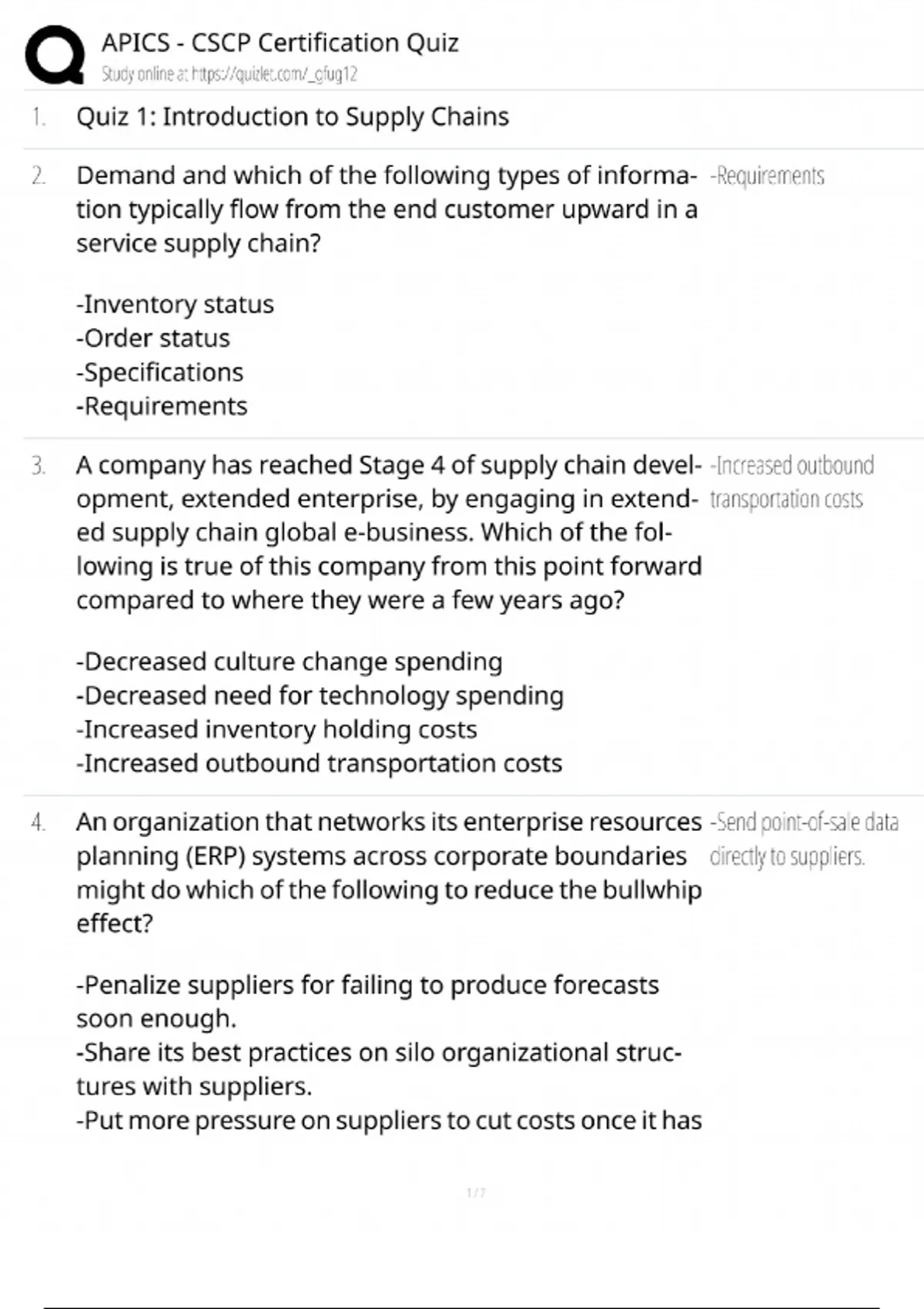 APICS - CSCP CertificAPICS CSCP certification quiz Certified Supply Chaination Quiz / Supply Chain Professional Practice Test / 2025 Exam Prep / Pass Guarantee