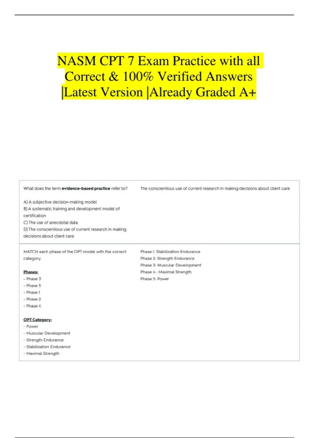 NASM CPT 7 Exam Practice with all Correct & 100% Verified Answers |Latest Version |Already Graded A+