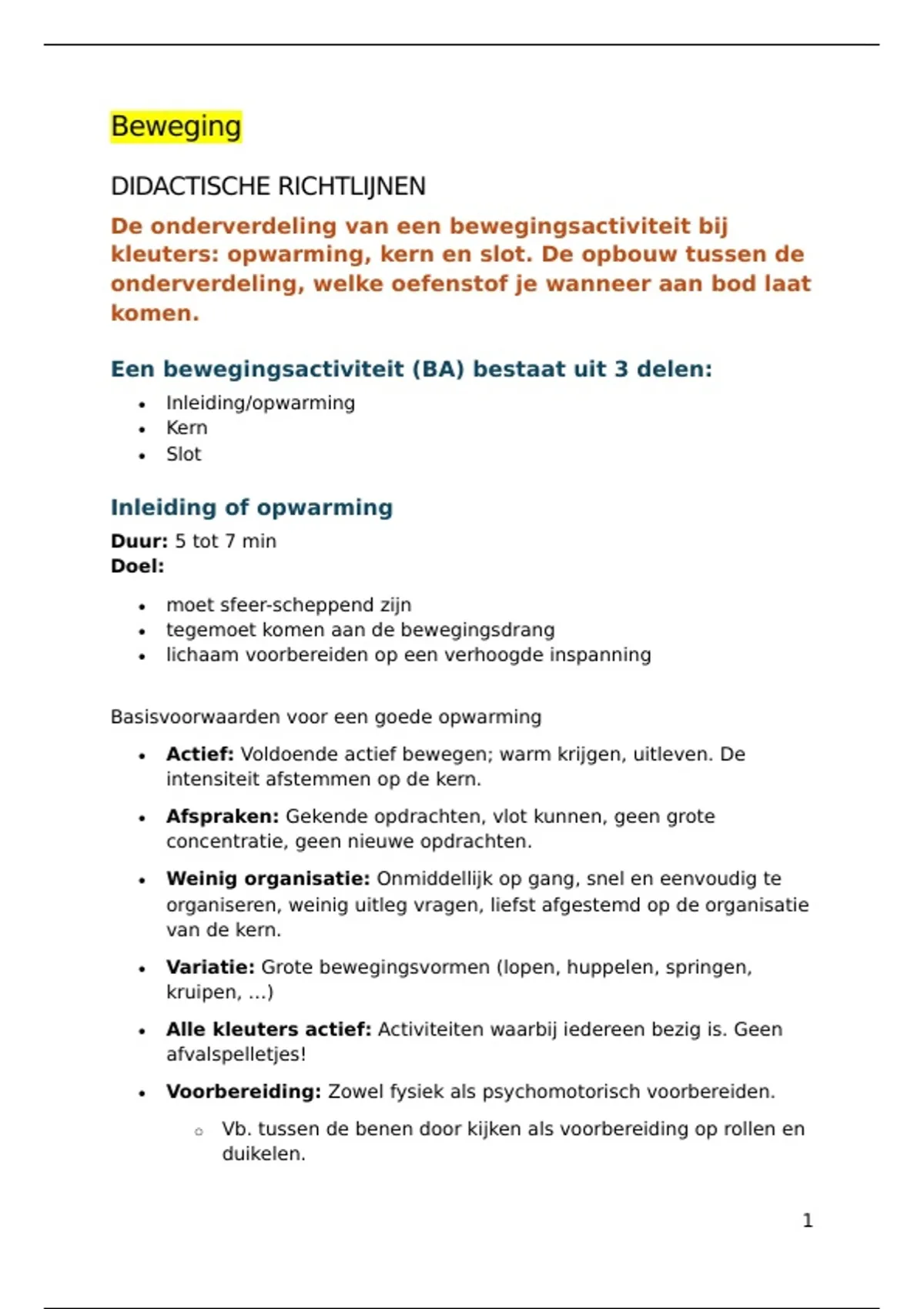 Dit is mijn samenvatting van het vak beweging in het 2e jaar kleuteronderwijs.