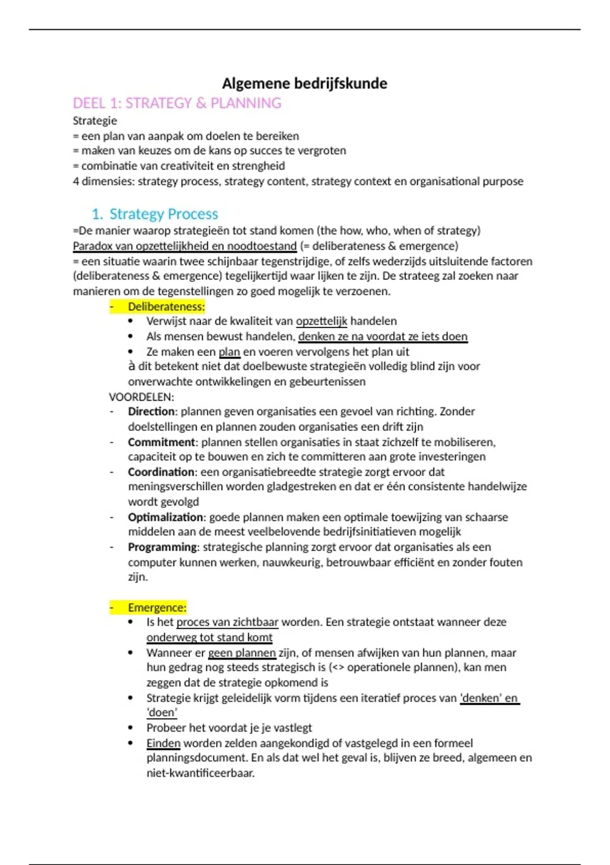 (deliberateness & emergence) tegelijkertijd waar lijken te zijn. De strateeg zal zoeken naar