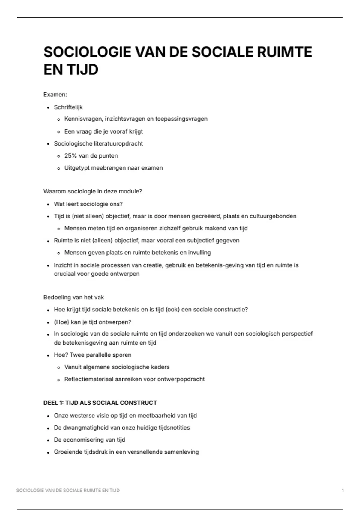 Samenvatting Sociologie van de sociale ruimte en tijd