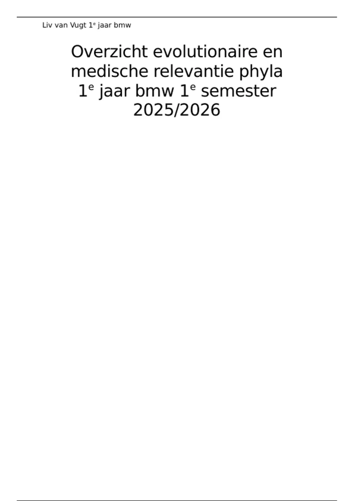 Alle medische en evolutonaire relevanties van de phyla in een overzicht.