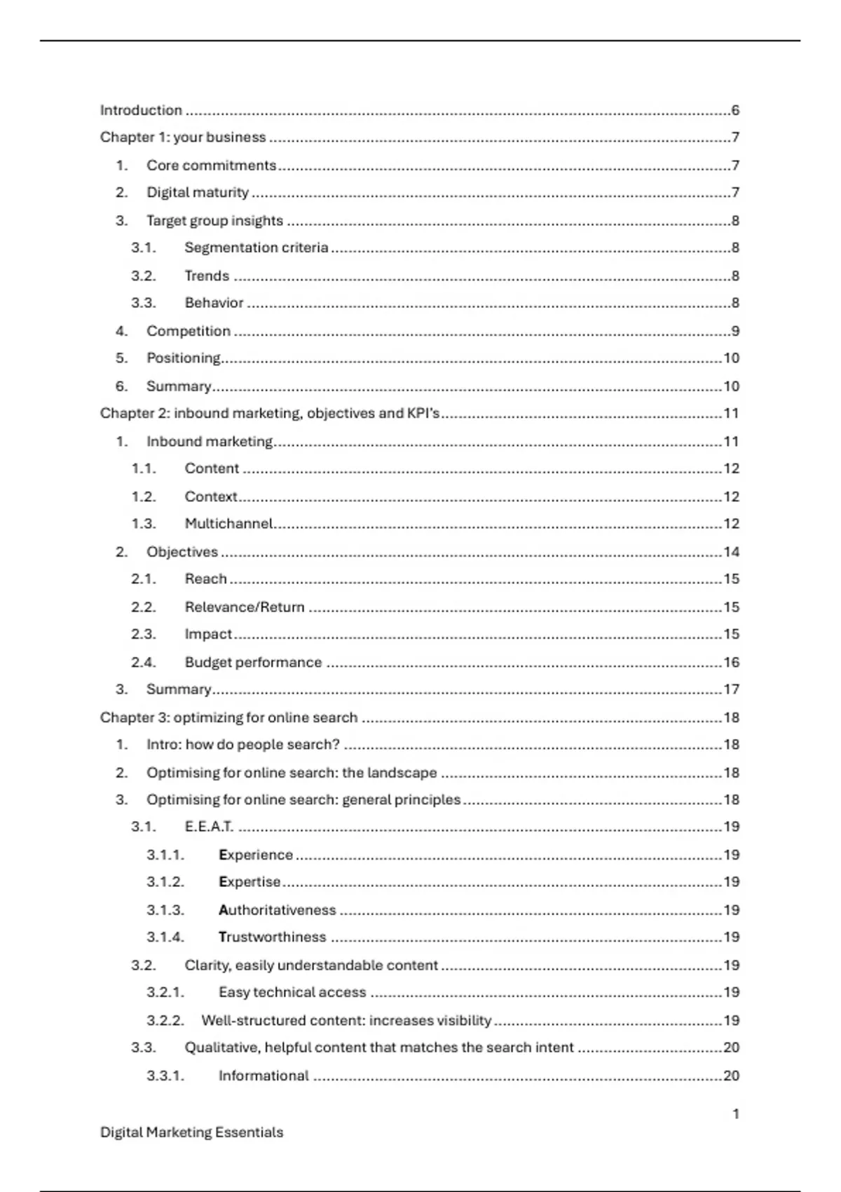 Samenvatting van alle hoofdstukken. Introduction Chapter 1: your business Chapter 2: inbound marketing, objectives and KPI’s Chapter 3: optimizing for online search Chapter 4: content marketing Chapter 5: social media landscape Chapter 6: social media general guidelines Chapter 7: Meta Chapter 8: Youtube Chapter 9: online advertising Tiktok Guest Lecture