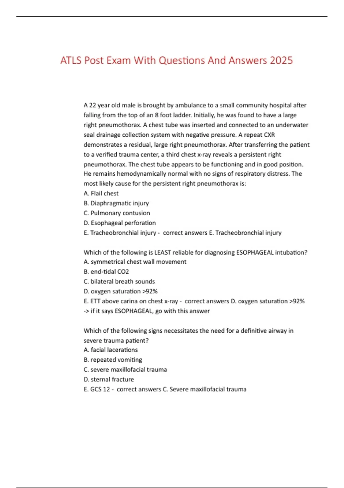 E. Tracheobronchial injury - correct answers E. Tracheobronchial injury