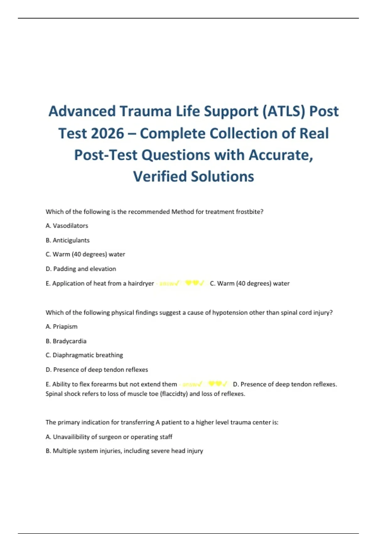 E. Fasciotomy of all four compartments in the lower extremity - answ✔️💜💜✔️B. Tamponade of the