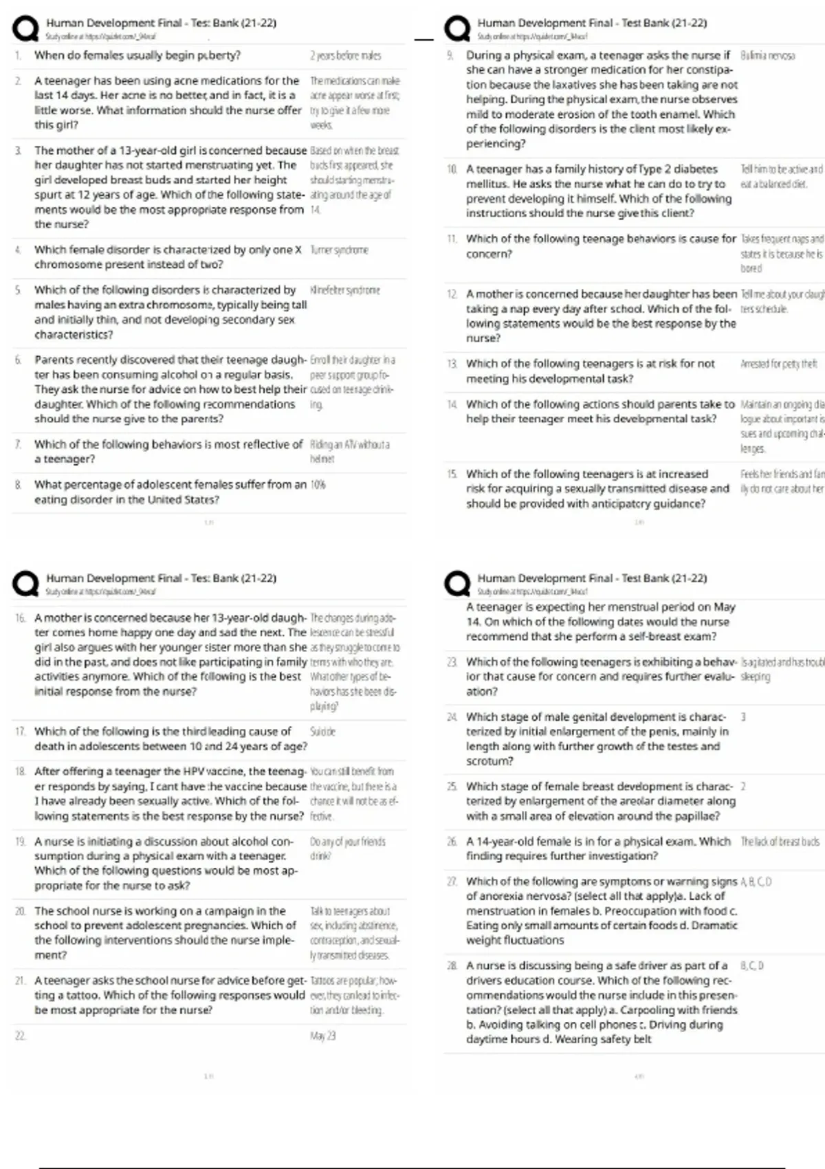 human development final exam test bank