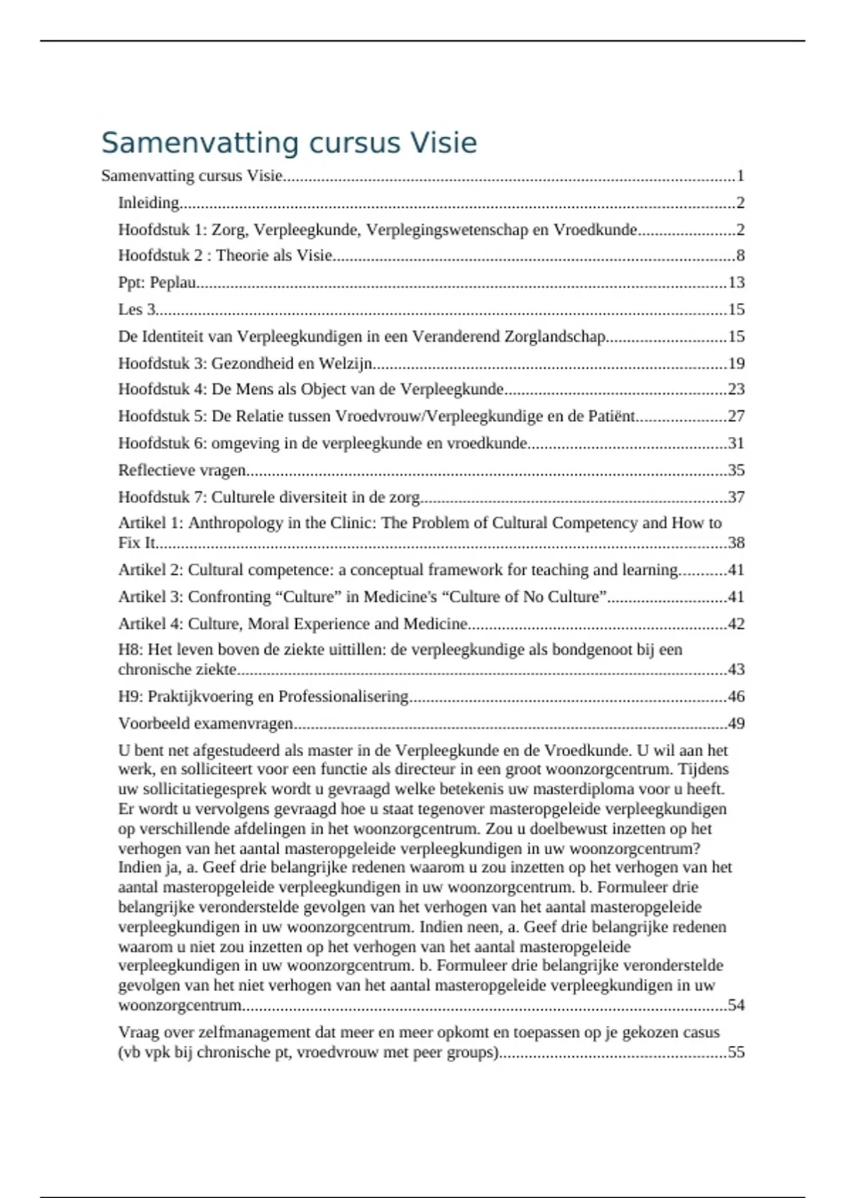 Hoofdstuk 1: Zorg, Verpleegkunde,