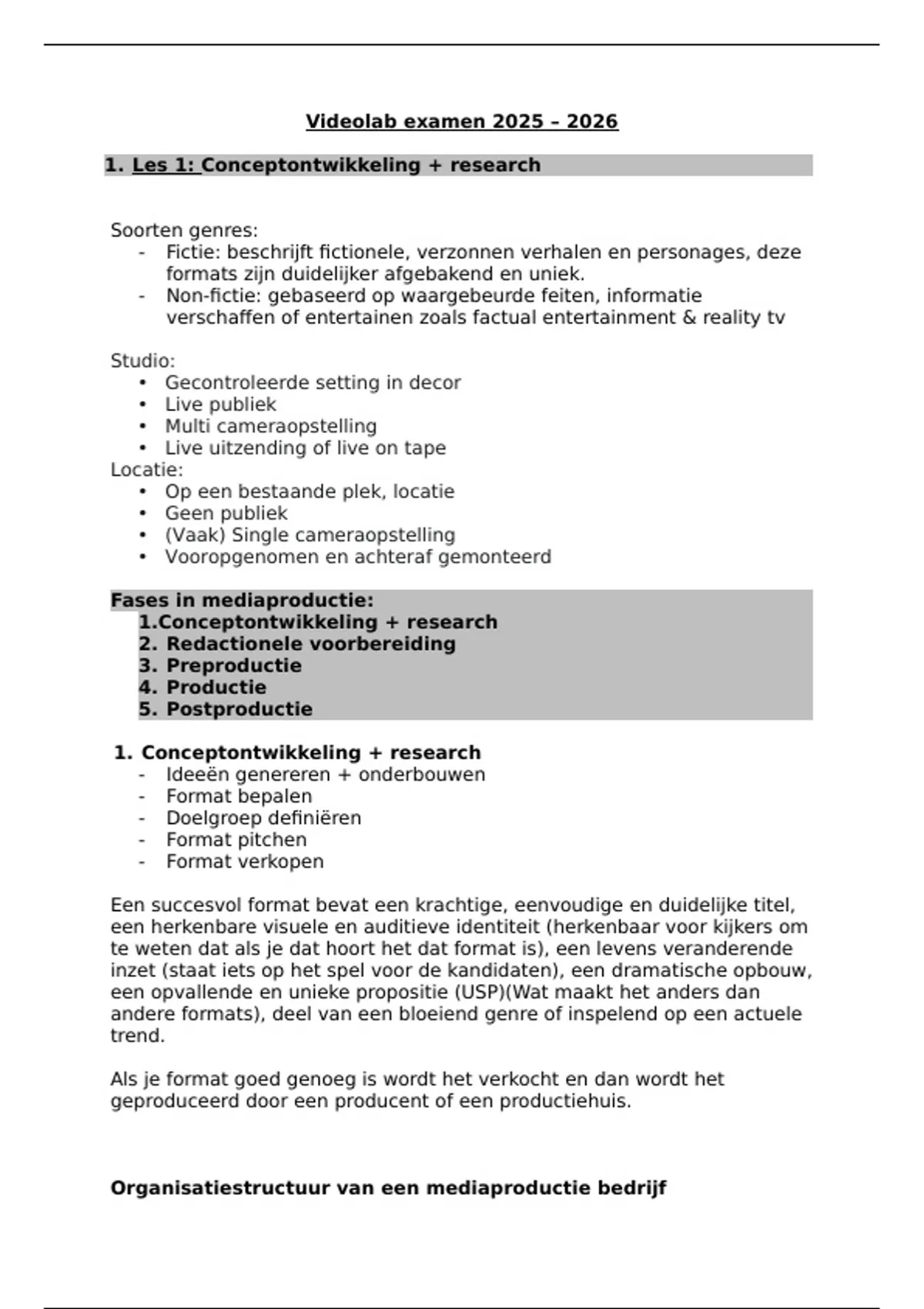Organisatiestructuur van een mediaproductie bedrijf