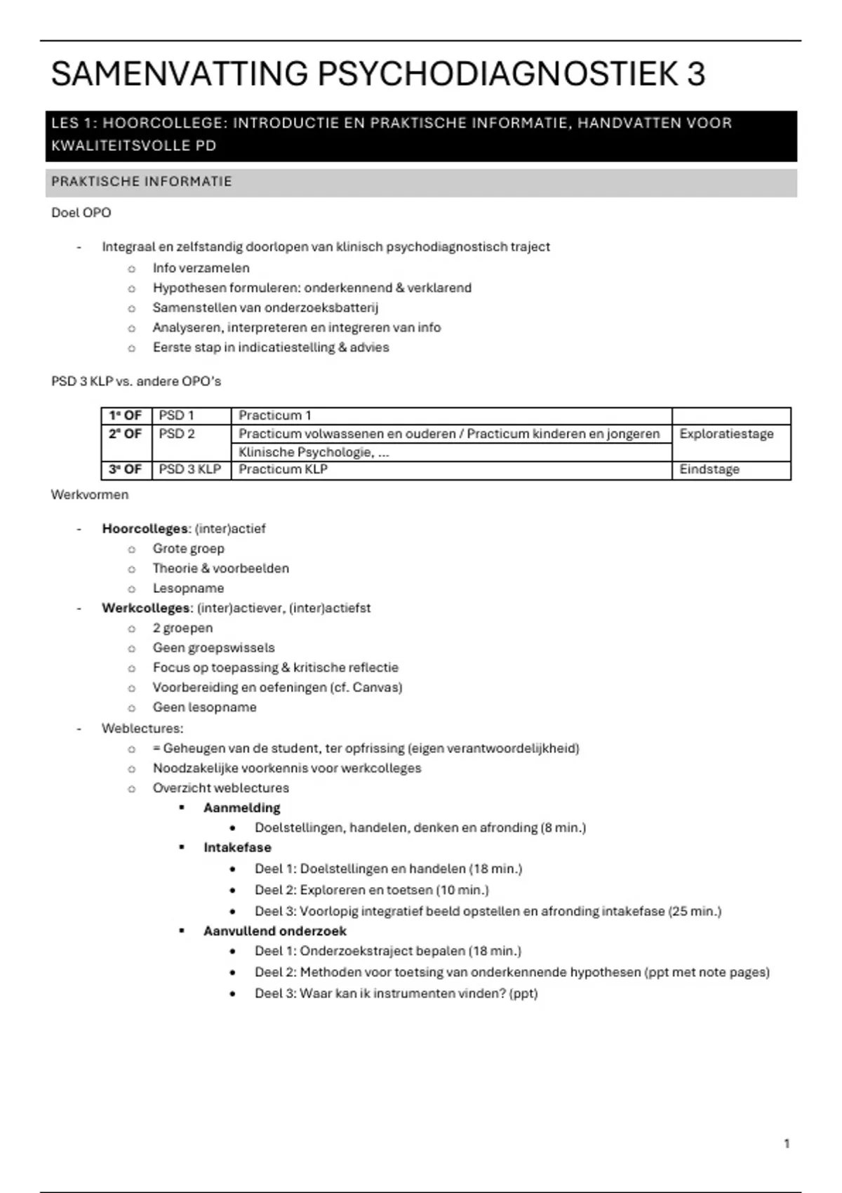- “Psychodiagnostiek gaat vooraf aan de begeleiding.” -> fout, is doorlopend, cyclisch proces (ook tijdens + erna)