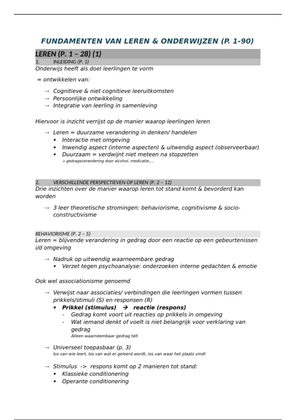 FUNDAMENTEN VAN LEREN & ONDERWIJZEN (P. 1-90)