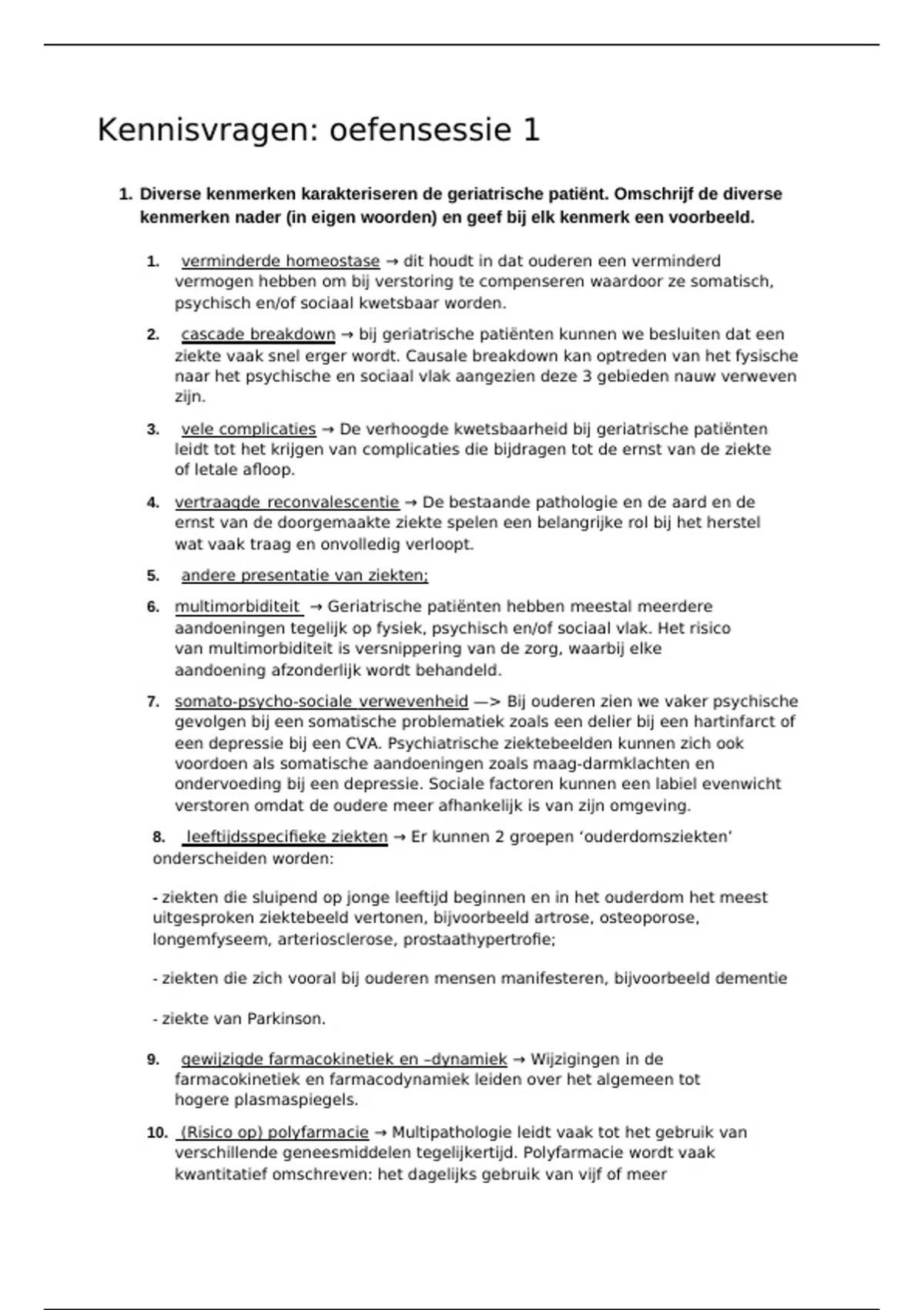 1. Diverse kenmerken karakteriseren de geriatrische patiënt. Omschrijf de diverse
