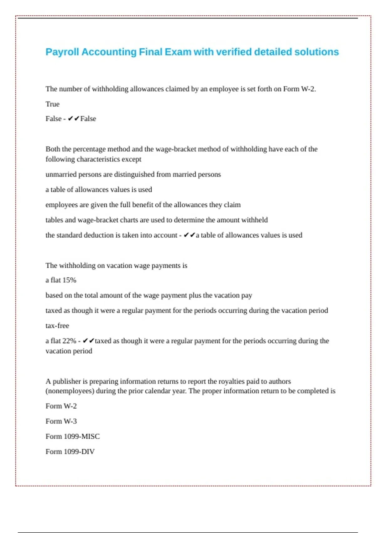 Payroll Accounting Final Exam with verified detailed solutions || || || || || || ||