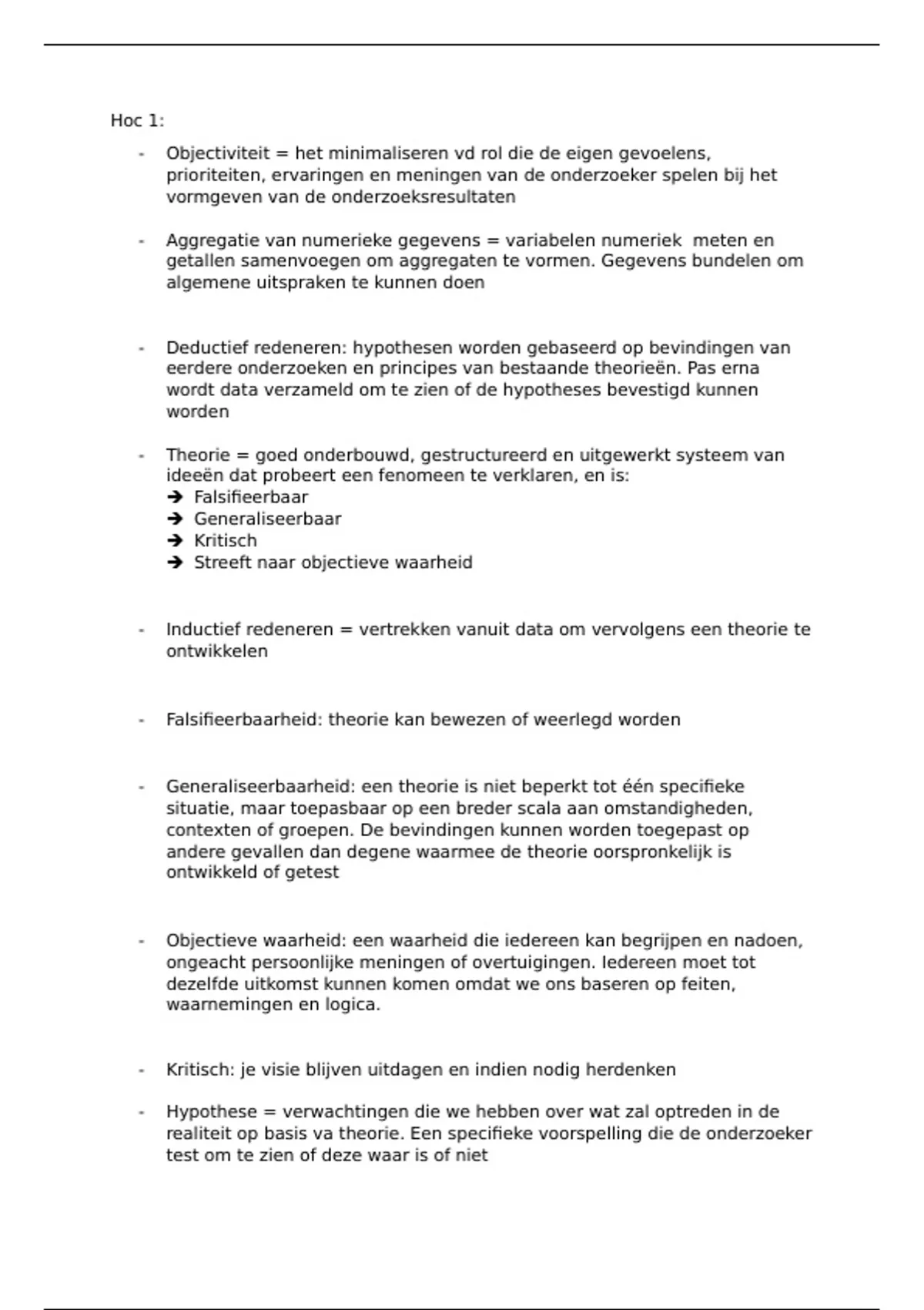 - Deductief redeneren: hypothesen worden gebaseerd op bevindingen van