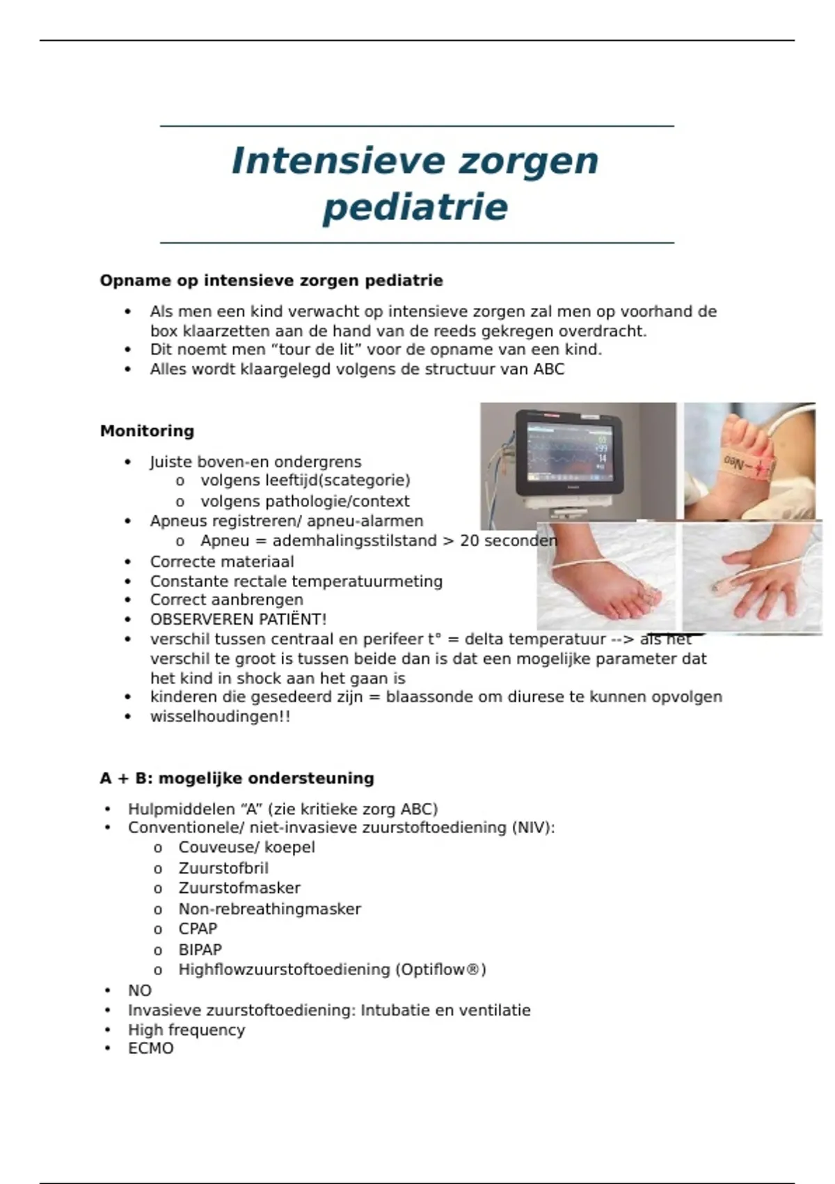 Samenvatting Intensieve zorgen pediatrie - MT3 - Hogent