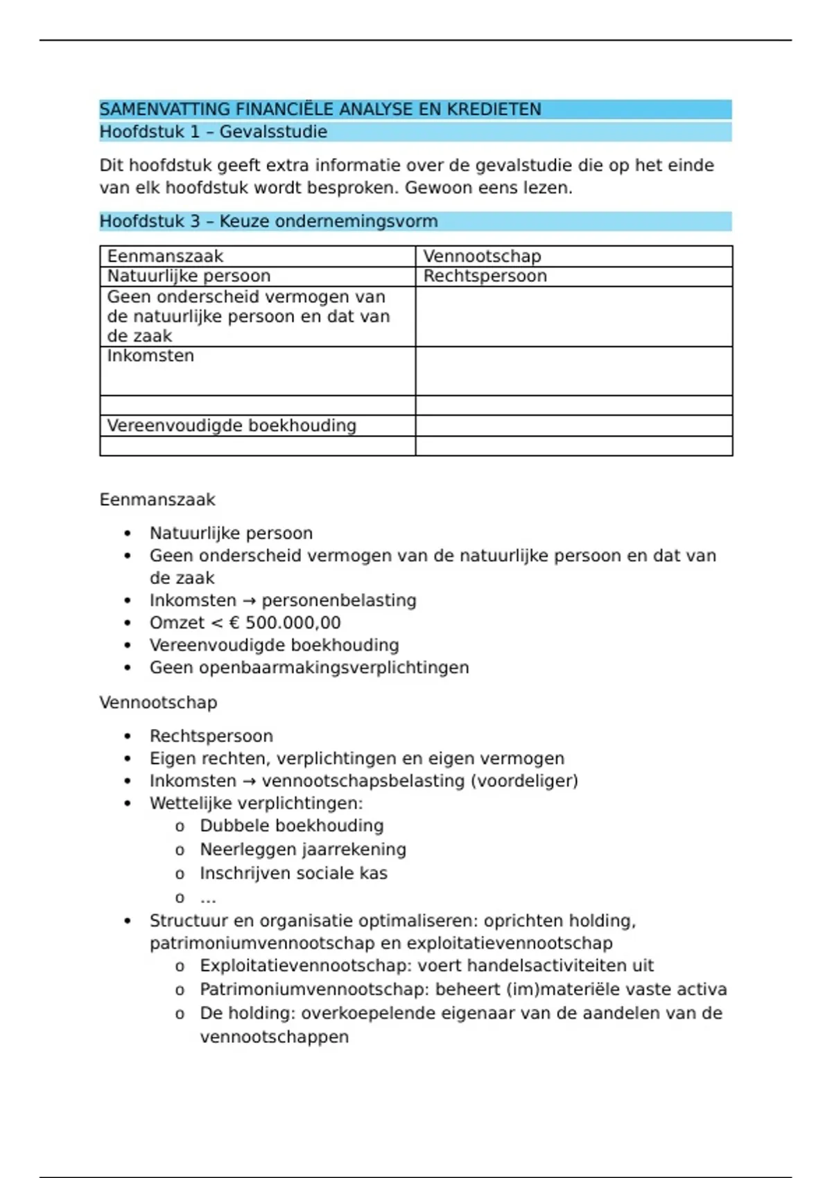 Hoofdstuk 3 – Keuze ondernemingsvorm
