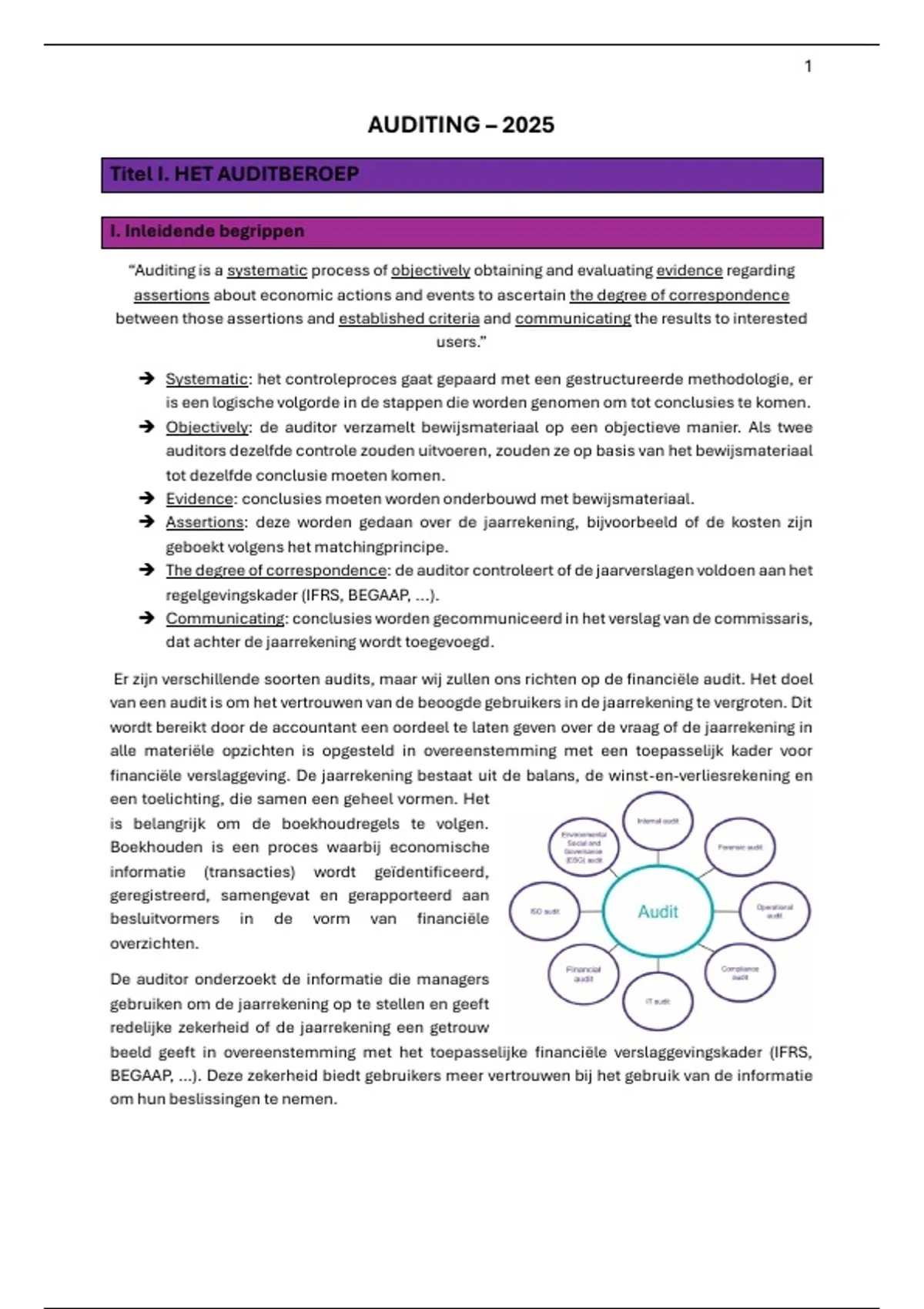 ➔ Assertions: deze worden gedaan over de jaarrekening, bijvoorbeeld of de kosten zijn