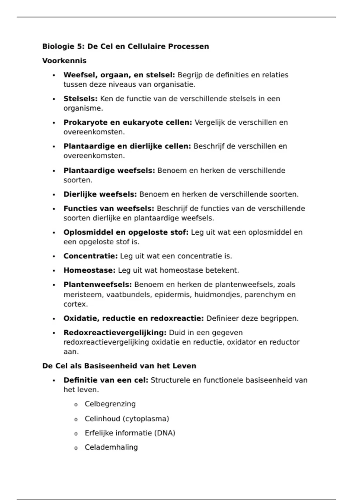Biologie 5: De Cel en Cellulaire Processen