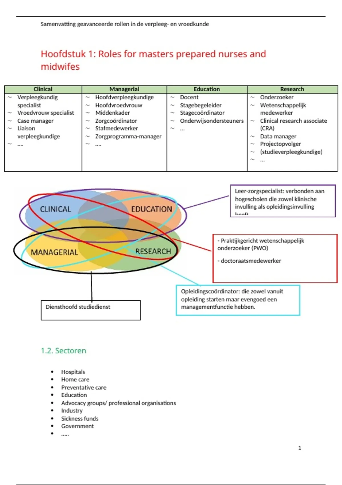 Hoofdstuk 1: Roles for masters prepared nurses and