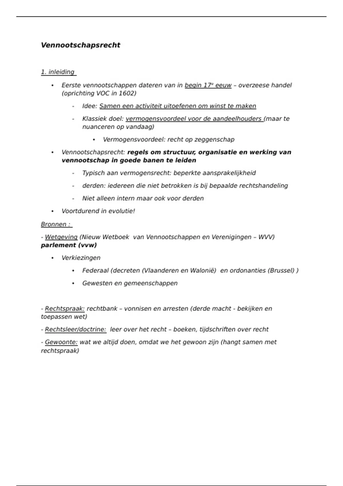 Deze gestructureerde en overzichtelijke samenvatting biedt een duidelijke en praktijkgerichte uiteenzetting van het vennootschapsrecht, volledig afgestemd op het Belgisch Wetboek van Vennootschappen en Verenigingen (WVV).