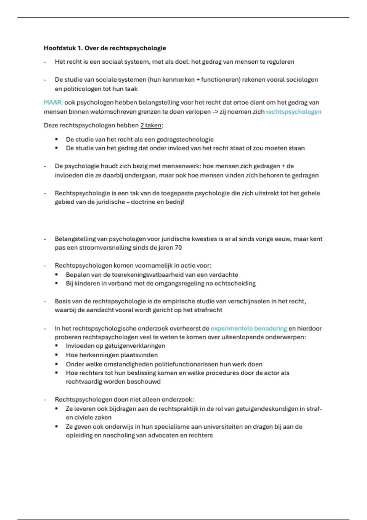 Volledige samenvatting rechtspsychologie AP hogeschool, 3de jaar, module 2