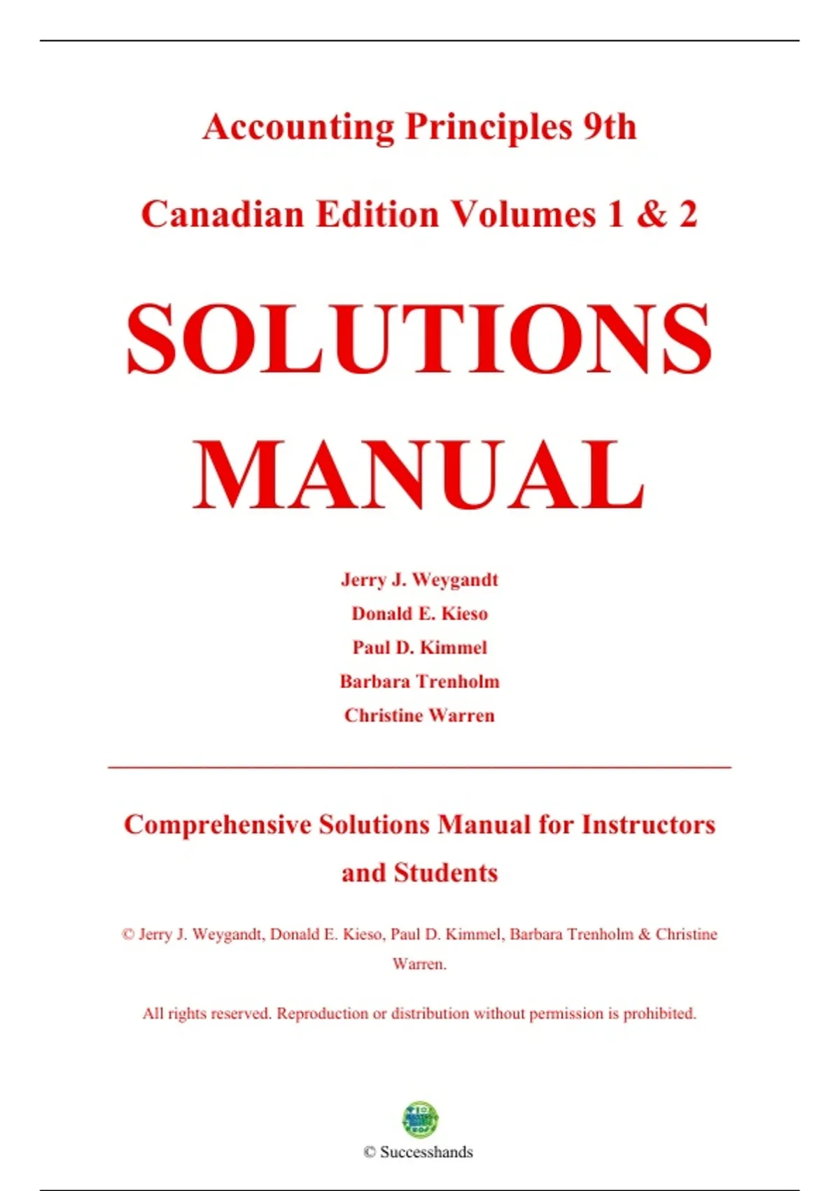 , Solutions Manual for Accounting Principles, Ninth Canadian Edition (Volumes 1 & 2)