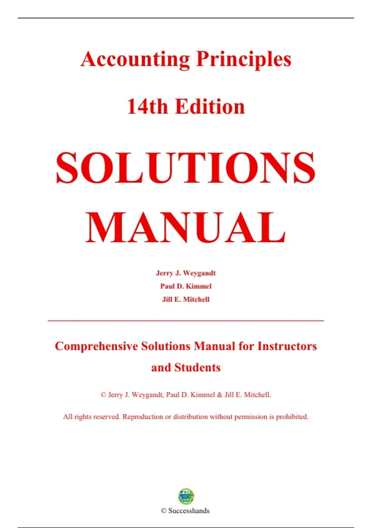 Complete Solutions Manual — Accounting Principles, 14th Edition — Jerry J. Weygandt — ISBN 9781119707110 — (All Chapters Covered 1–27, Step-by-Step Solutions)