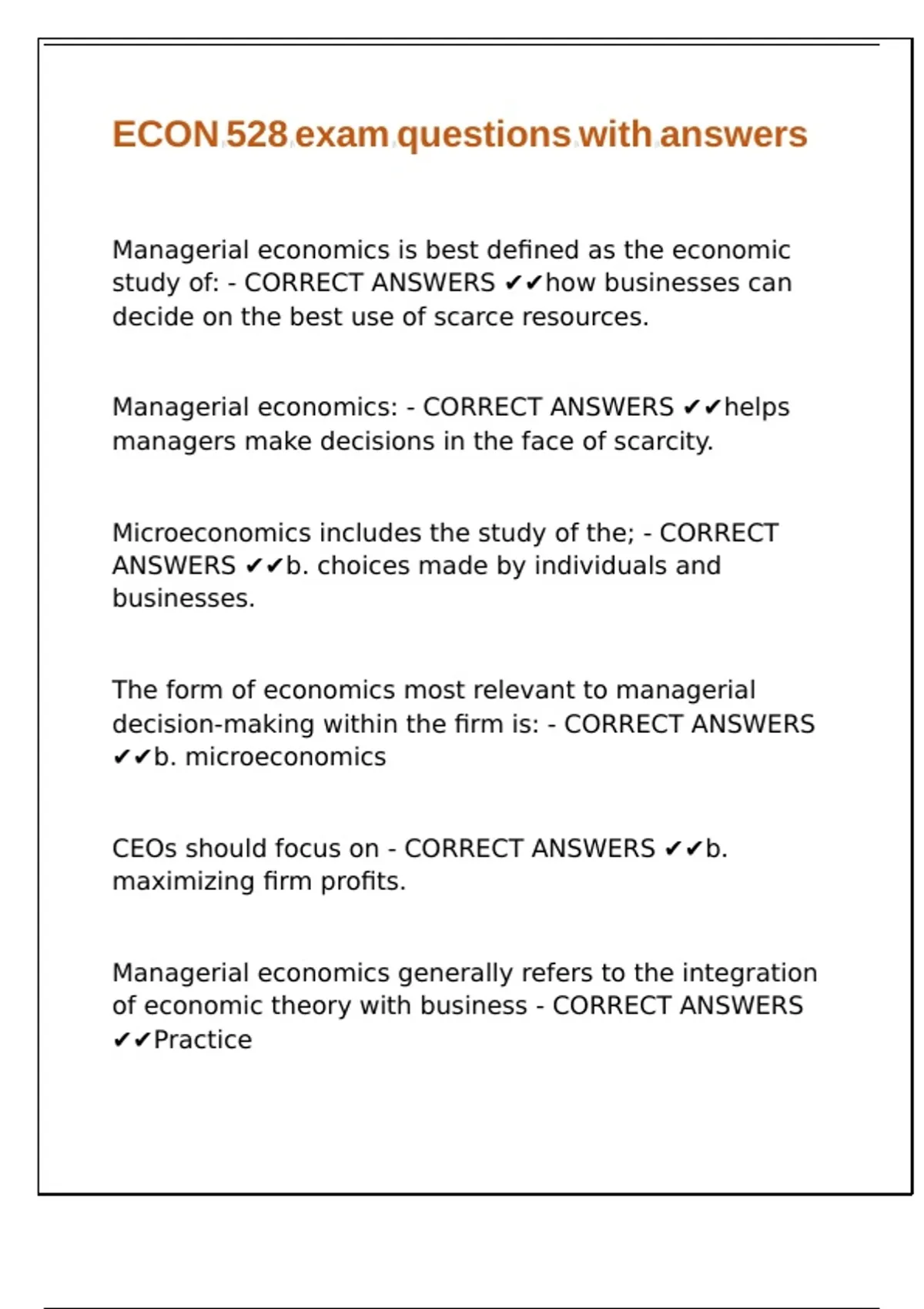 ECON 528 exam questions with answers