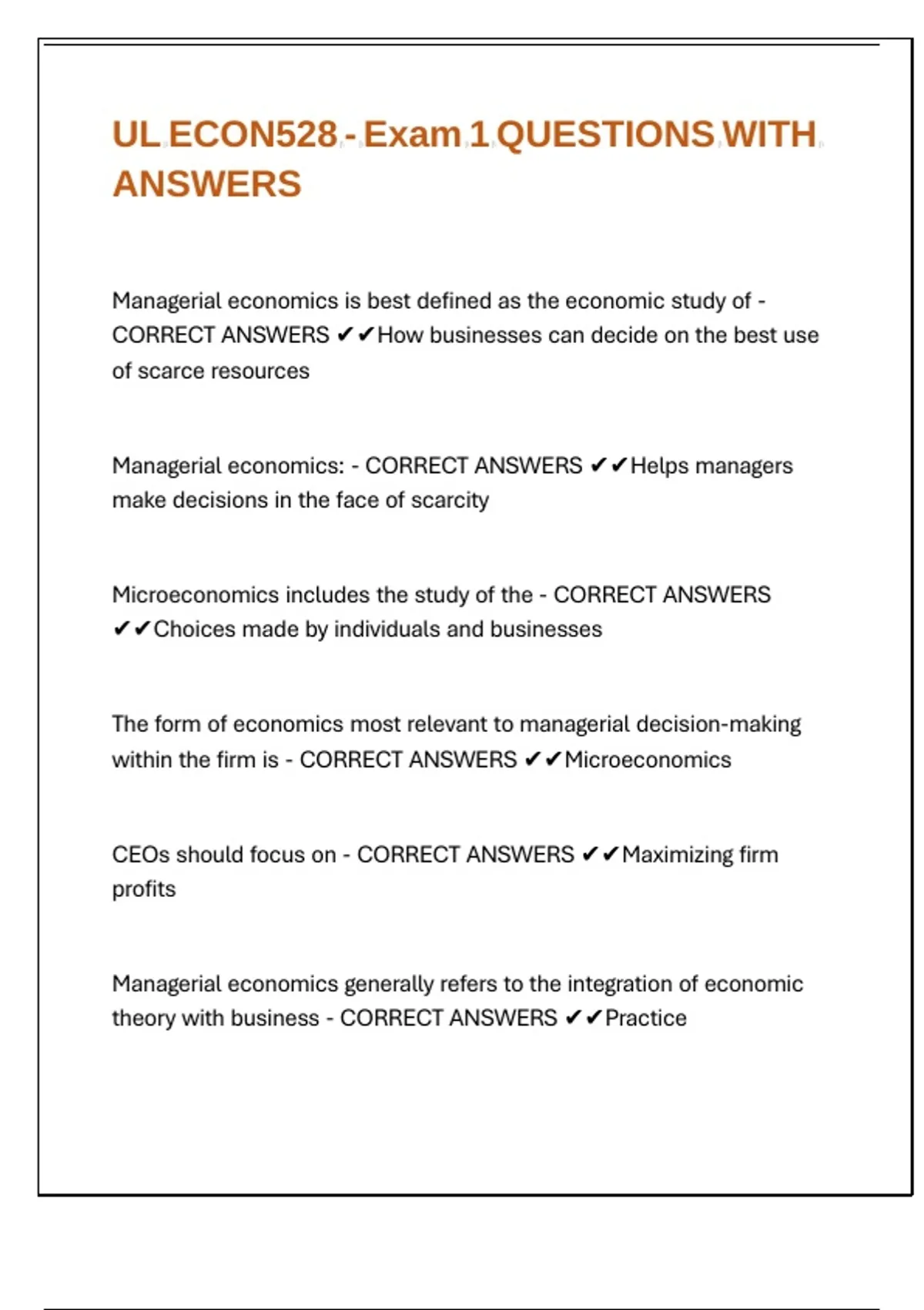 Managerial economics: - CORRECT ANSWERS ✔✔Helps managers