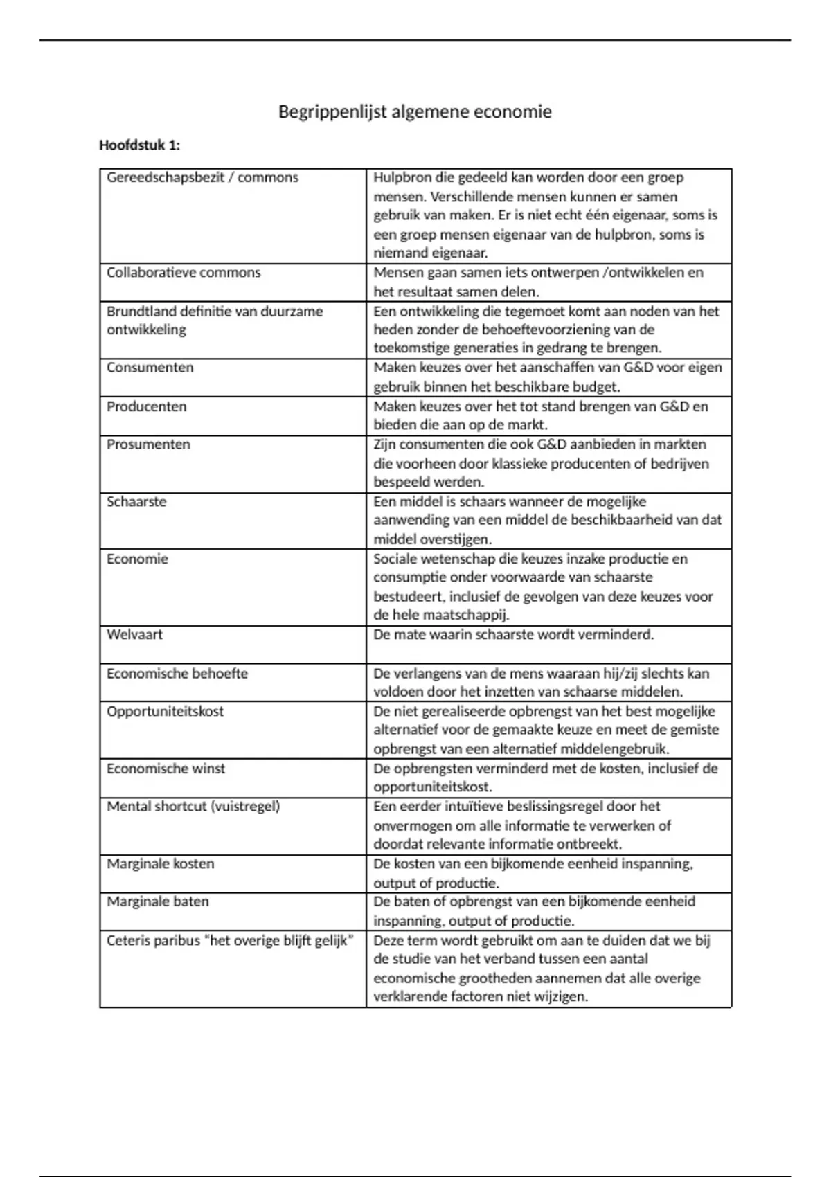 Begrippenlijst algemene economie