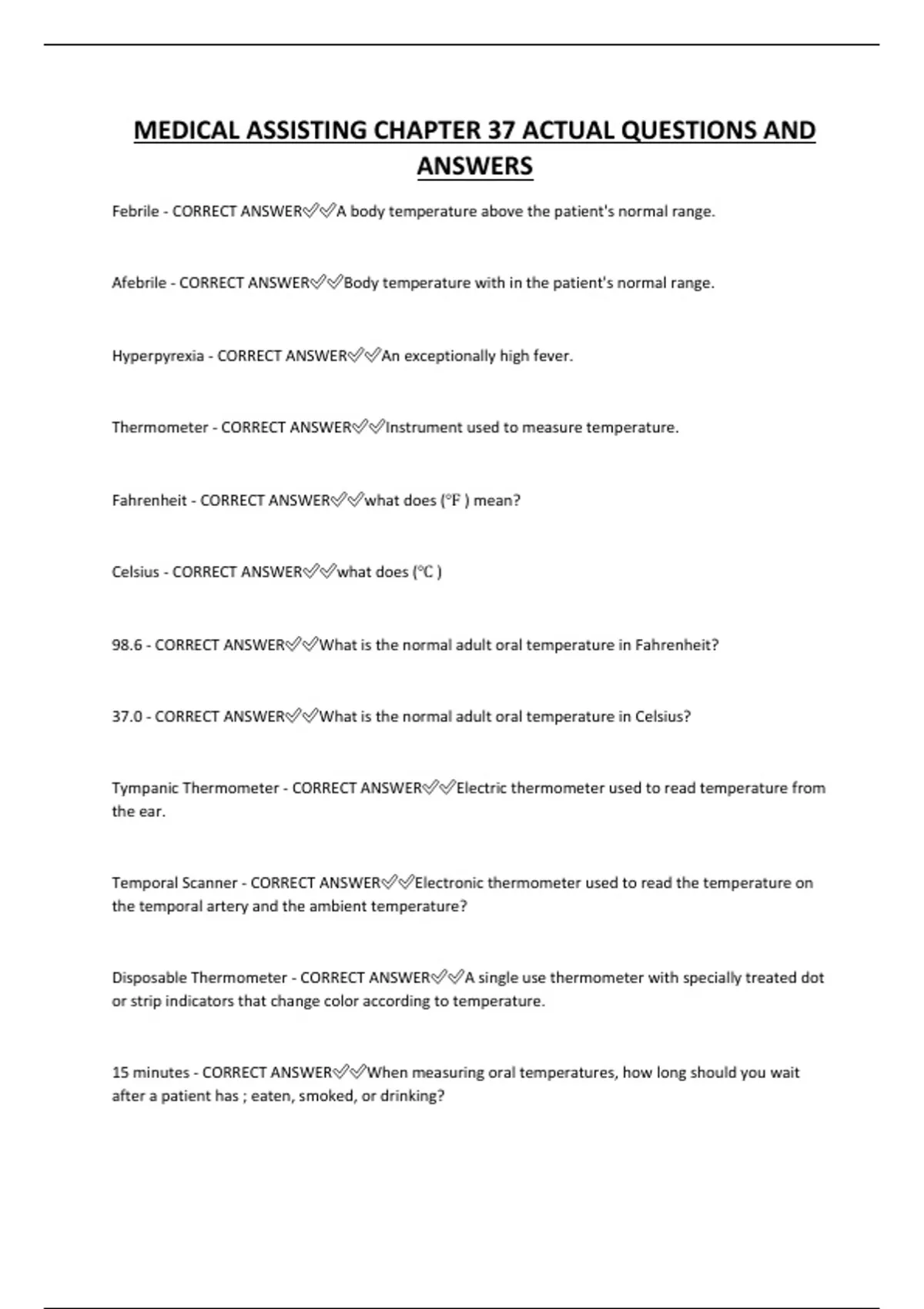 MEDICAL ASSISTING CHAPTER 37 ACTUAL QUESTIONS AND