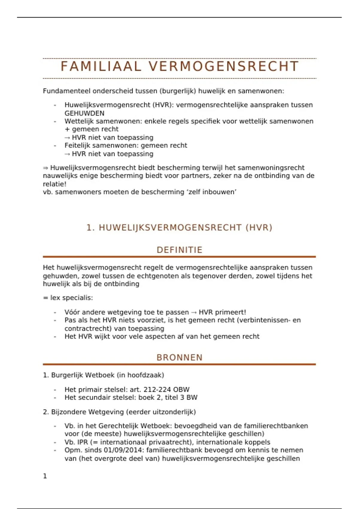 1. HUWELIJKSVERMOGENSRECHT (HVR)