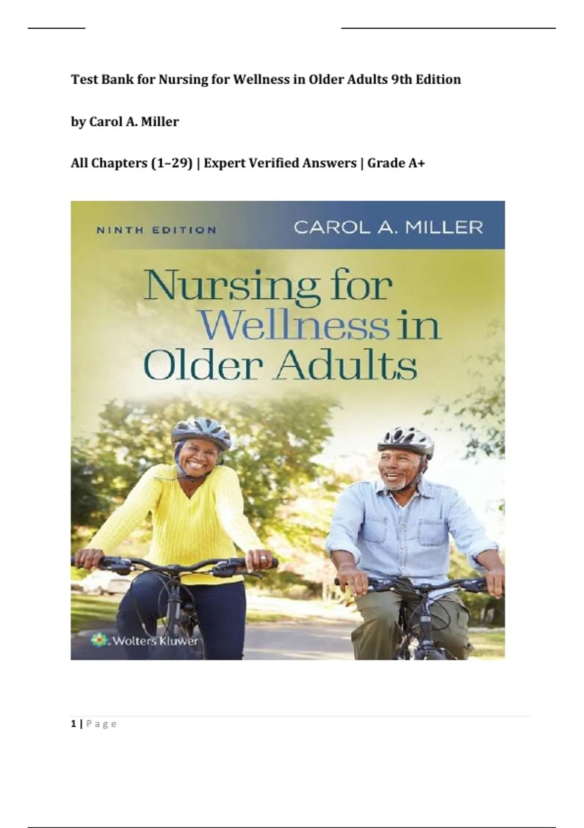 Test Bank for Nursing for Wellness in Older Adults 9th Edition by Carol A. Miller |All Chapters (1–29) | Expert Verified Answers | Grade A+