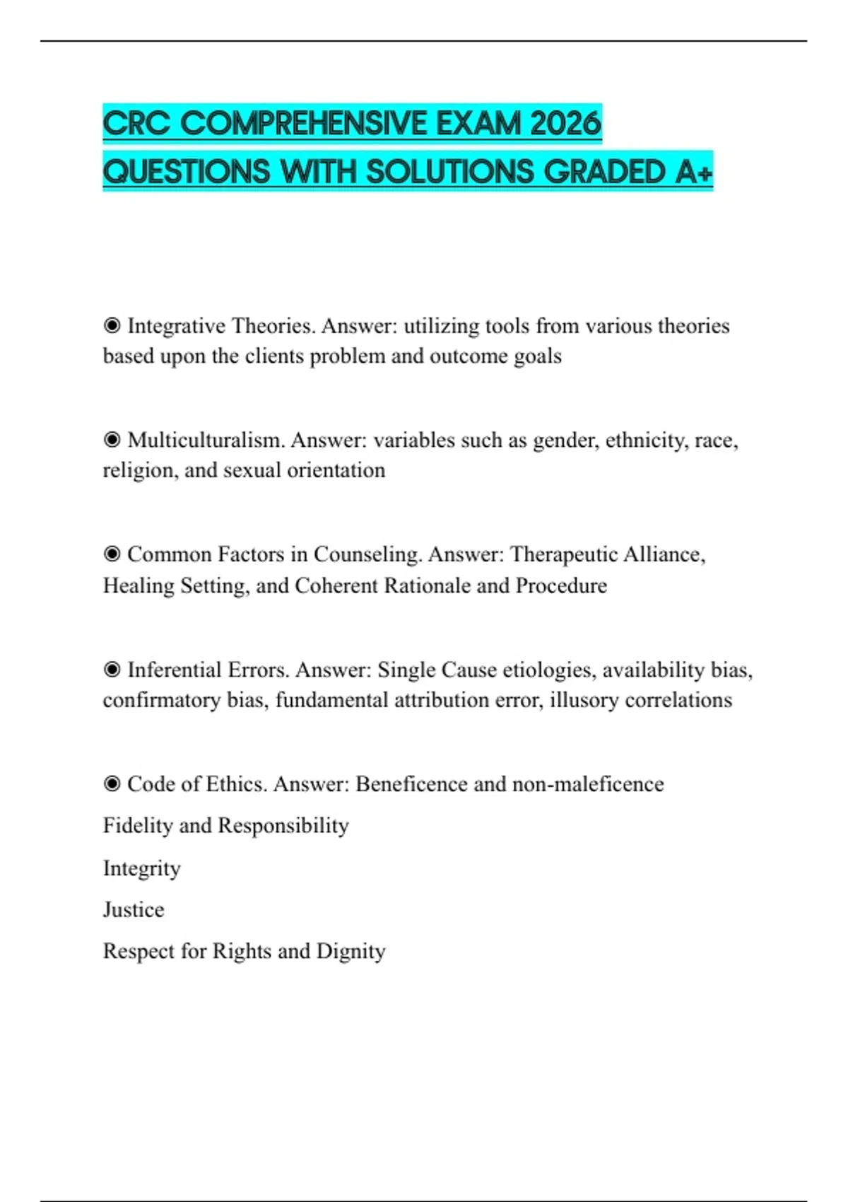 CRC COMPREHENSIVE EXAM 2026 QUESTIONS WITH SOLUTIONS GRADED A+