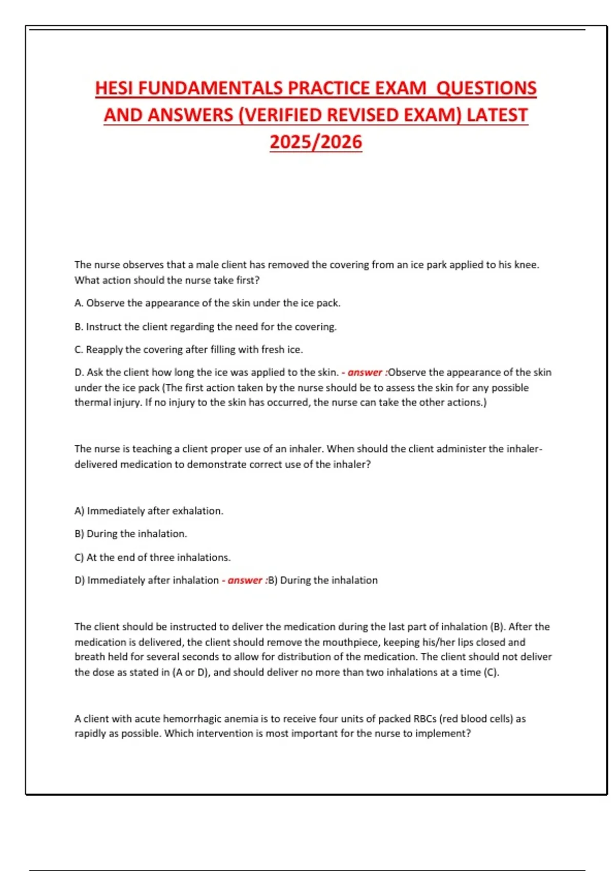 AND ANSWERS (VERIFIED REVISED EXAM) LATEST