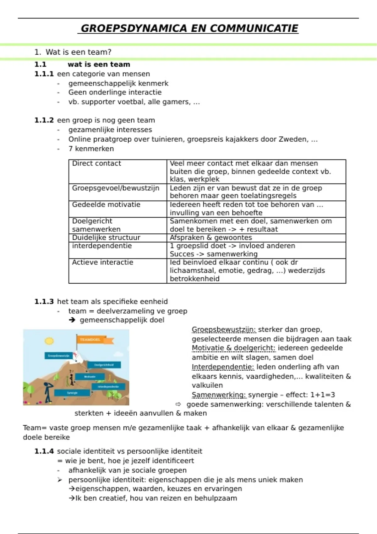 Team= vaste groep mensen m/e gezamenlijke taak + afhankelijk van elkaar & gezamenlijke
