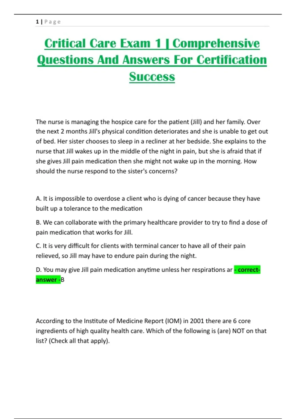 Critical Care Exam 1 | Comprehensive Questions And Answers For Certification Success